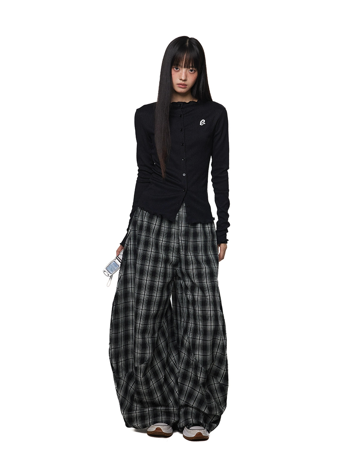 سترة طويلة بأكمام مضلعة وشعار مطرّز