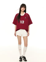قميص تورتل نيك بأكمام قصيرة فضفاض على الطراز الرجعي