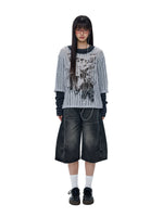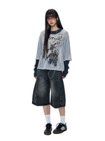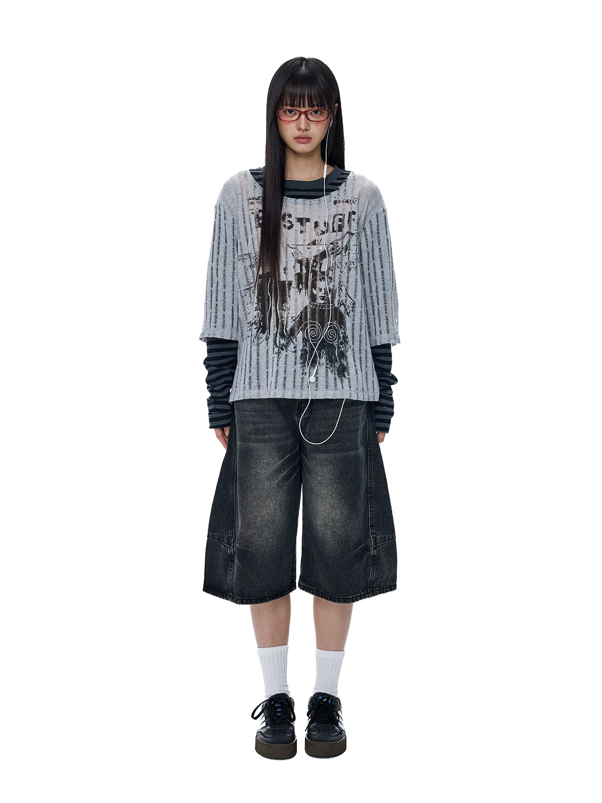 طقم قميص طويل الأكمام بتصميم مطبوع وقبة عالية