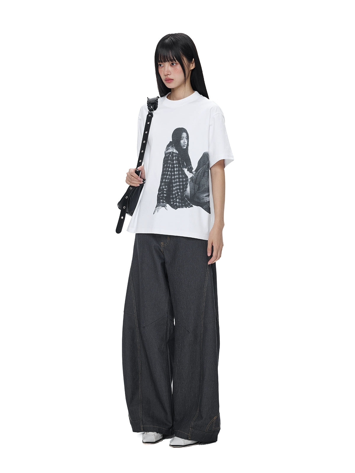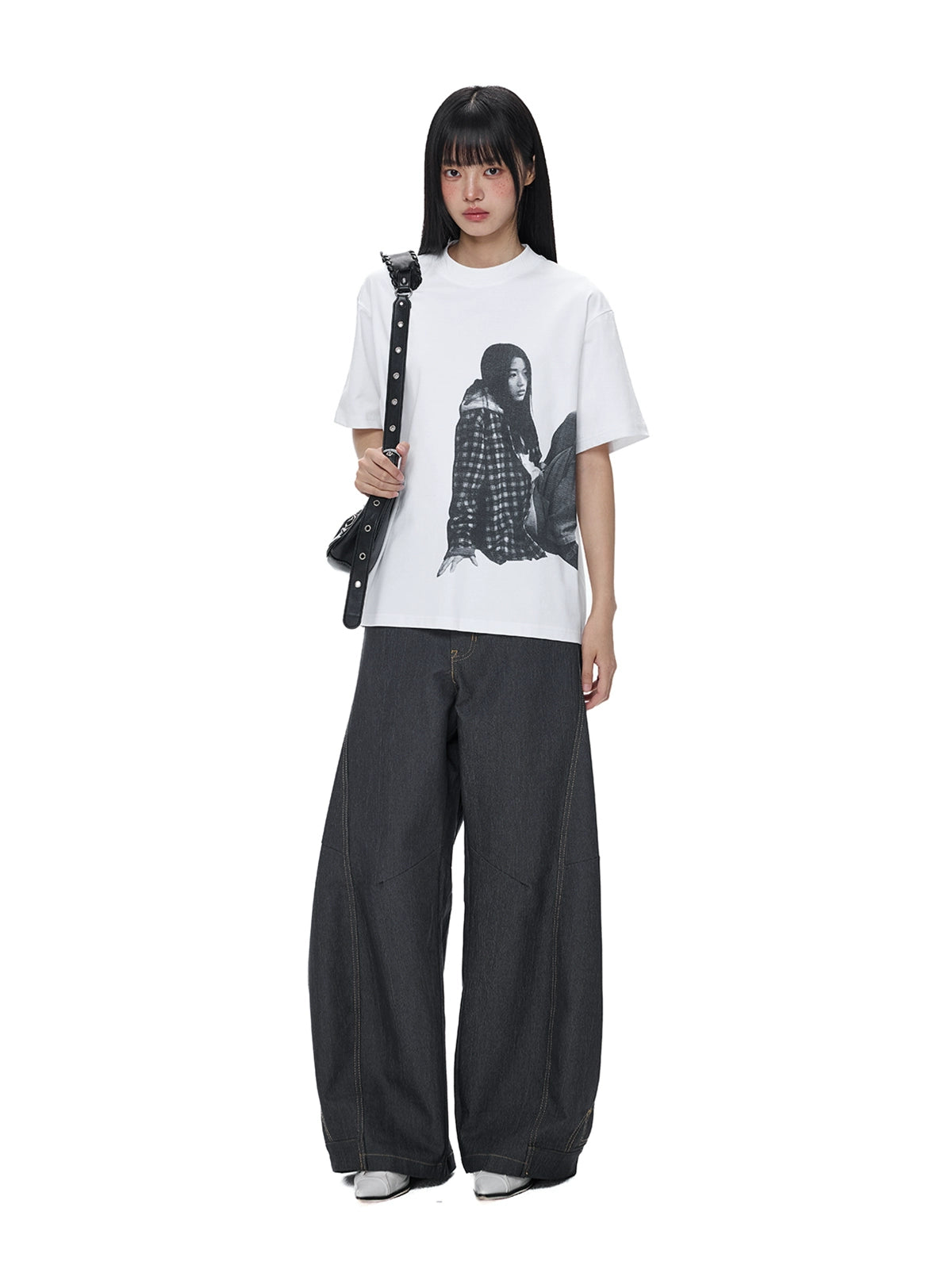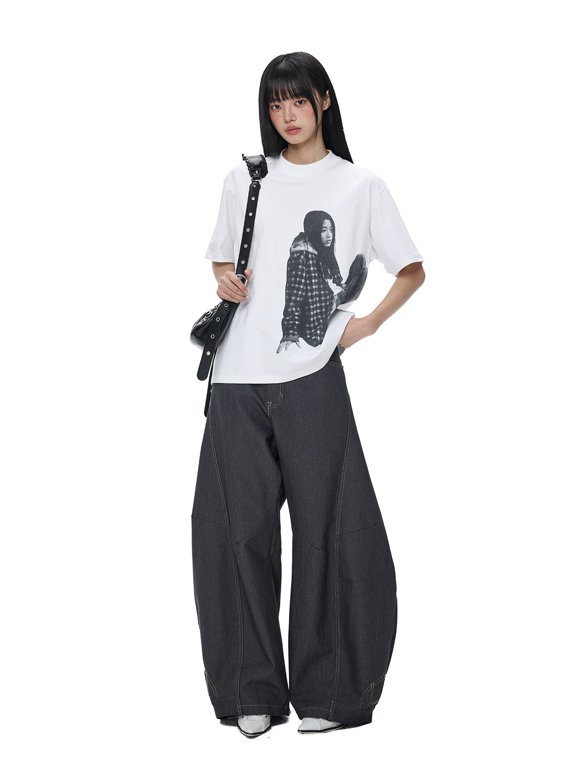 بنطلون جينز واسع الساقين بتصميم ريترو