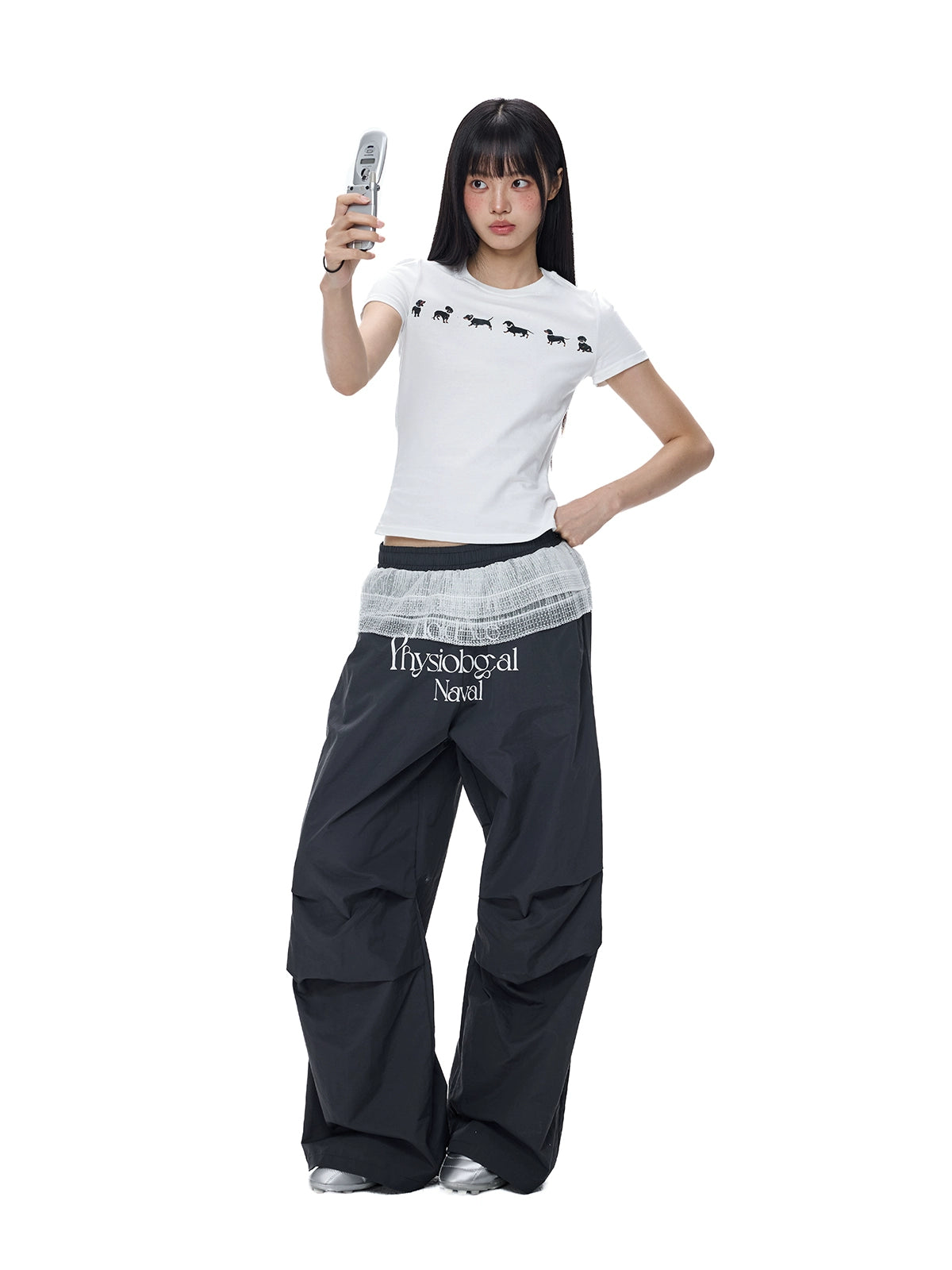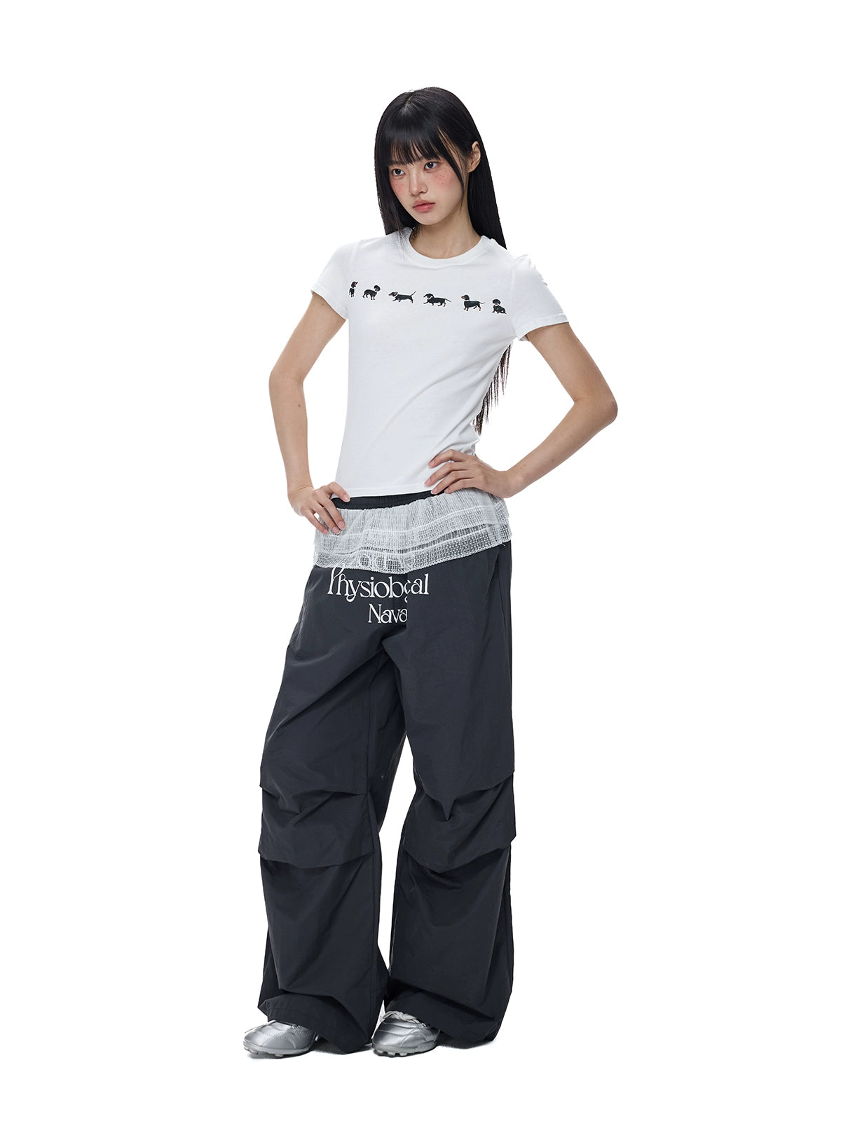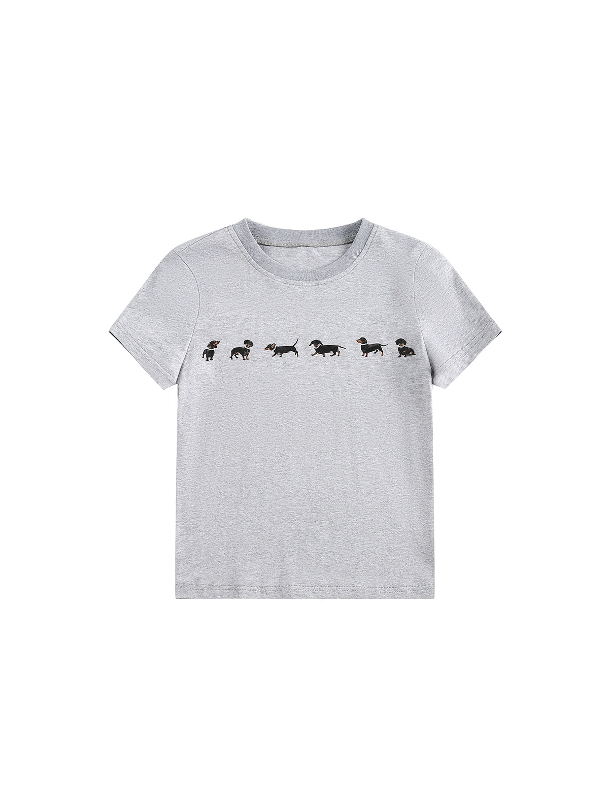 تي شيرت قصير الأكمام بطبعة جرو بتصميم ضيق