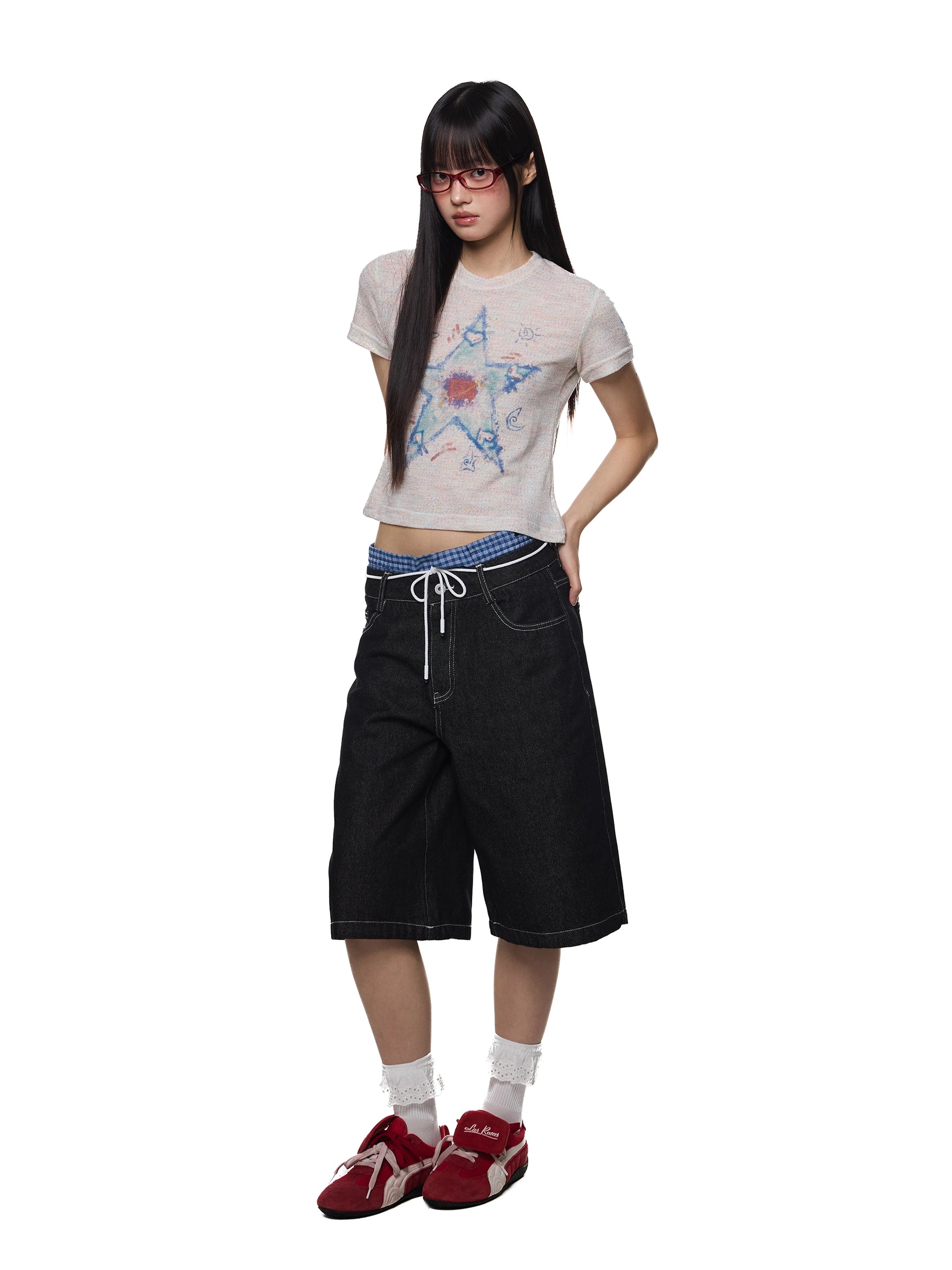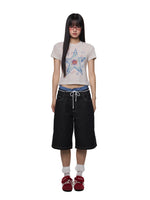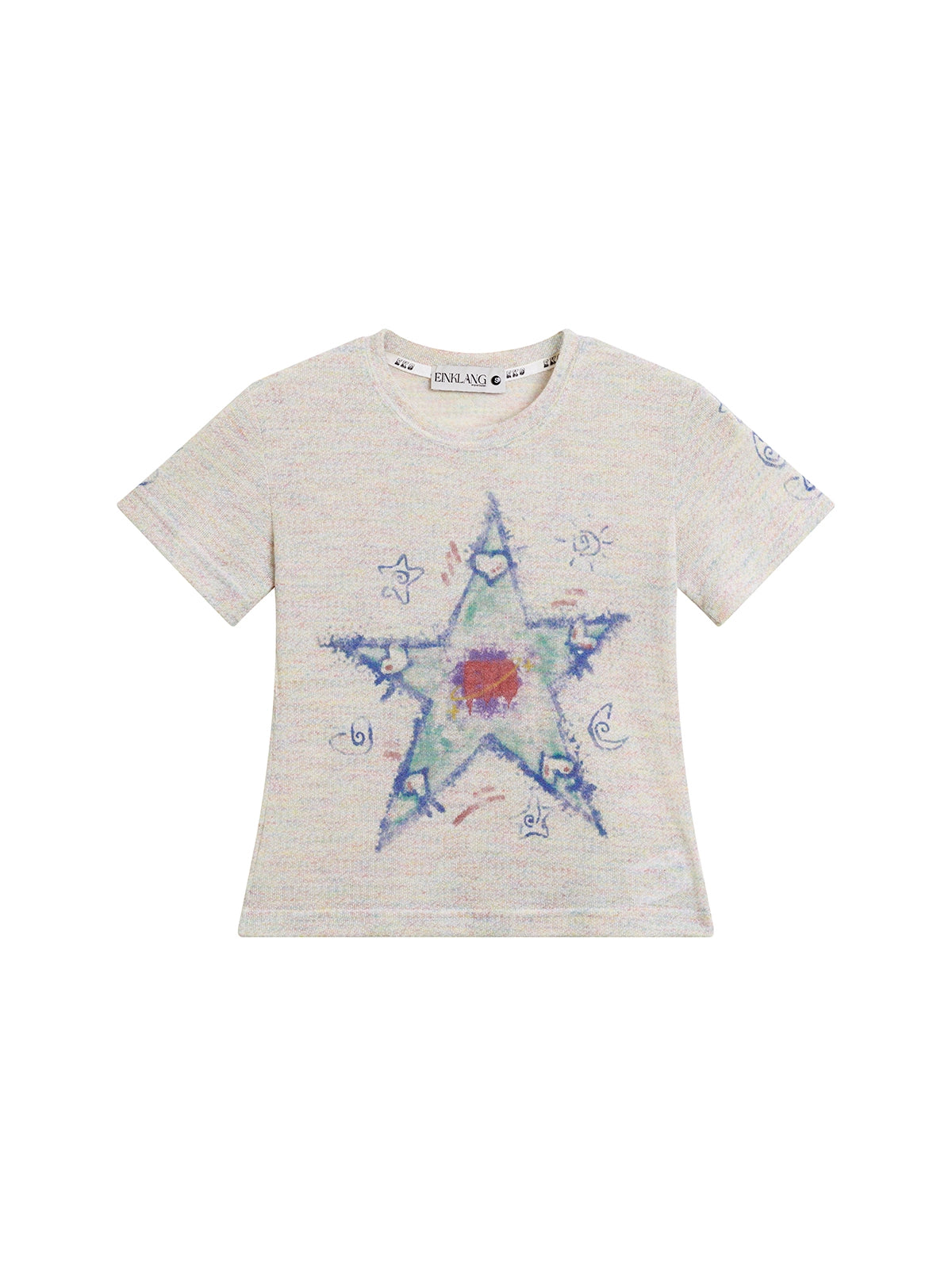 تي شيرت مزخرف بنجمة بقصة ضيقة وياقة دائرية