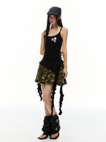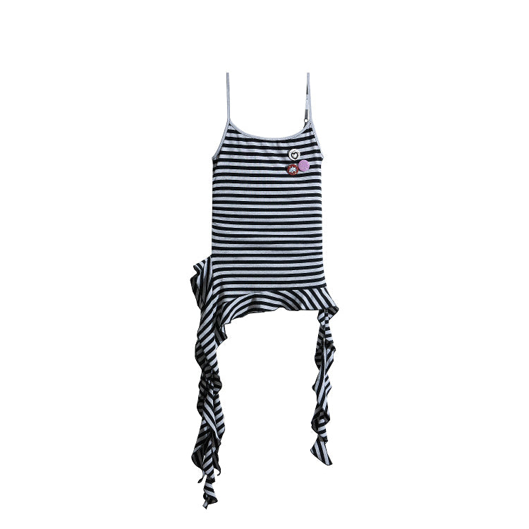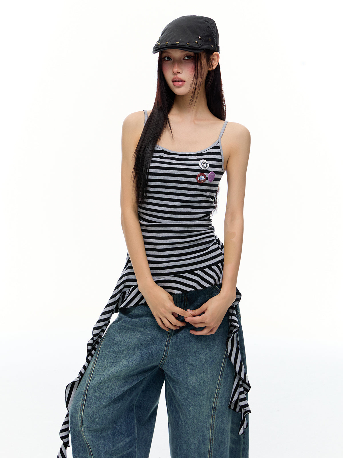 قميص بدون أكمام بحواف غير منتظمة مخطط