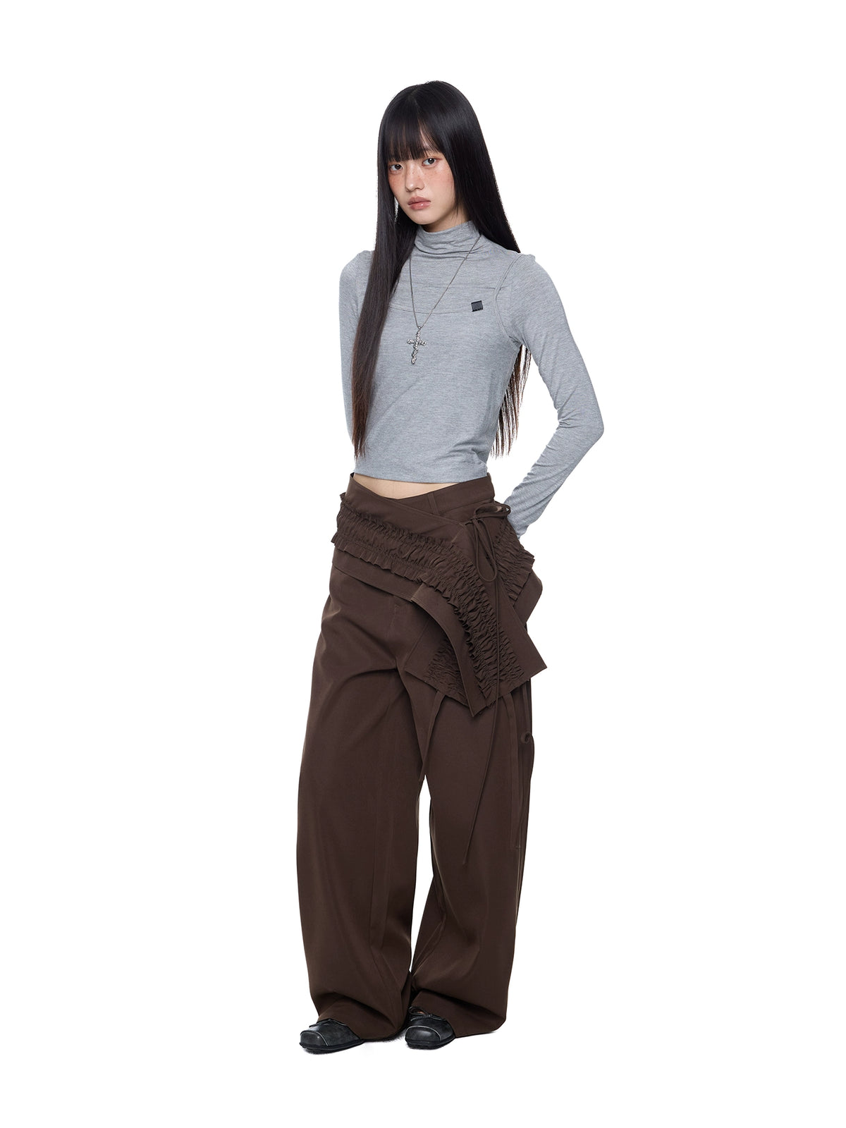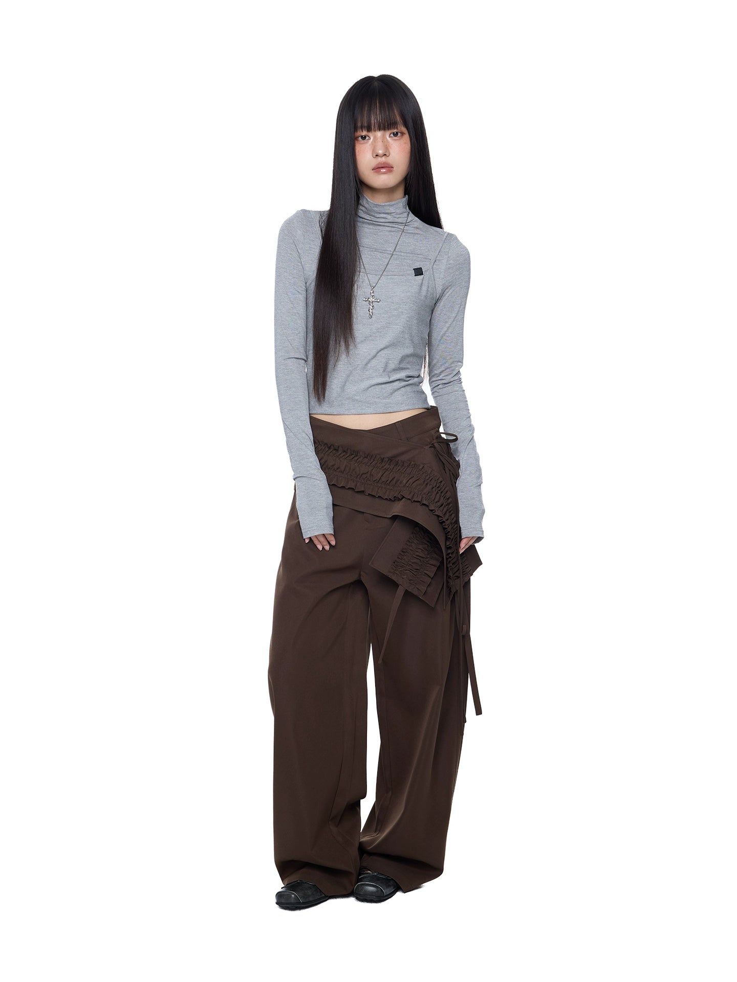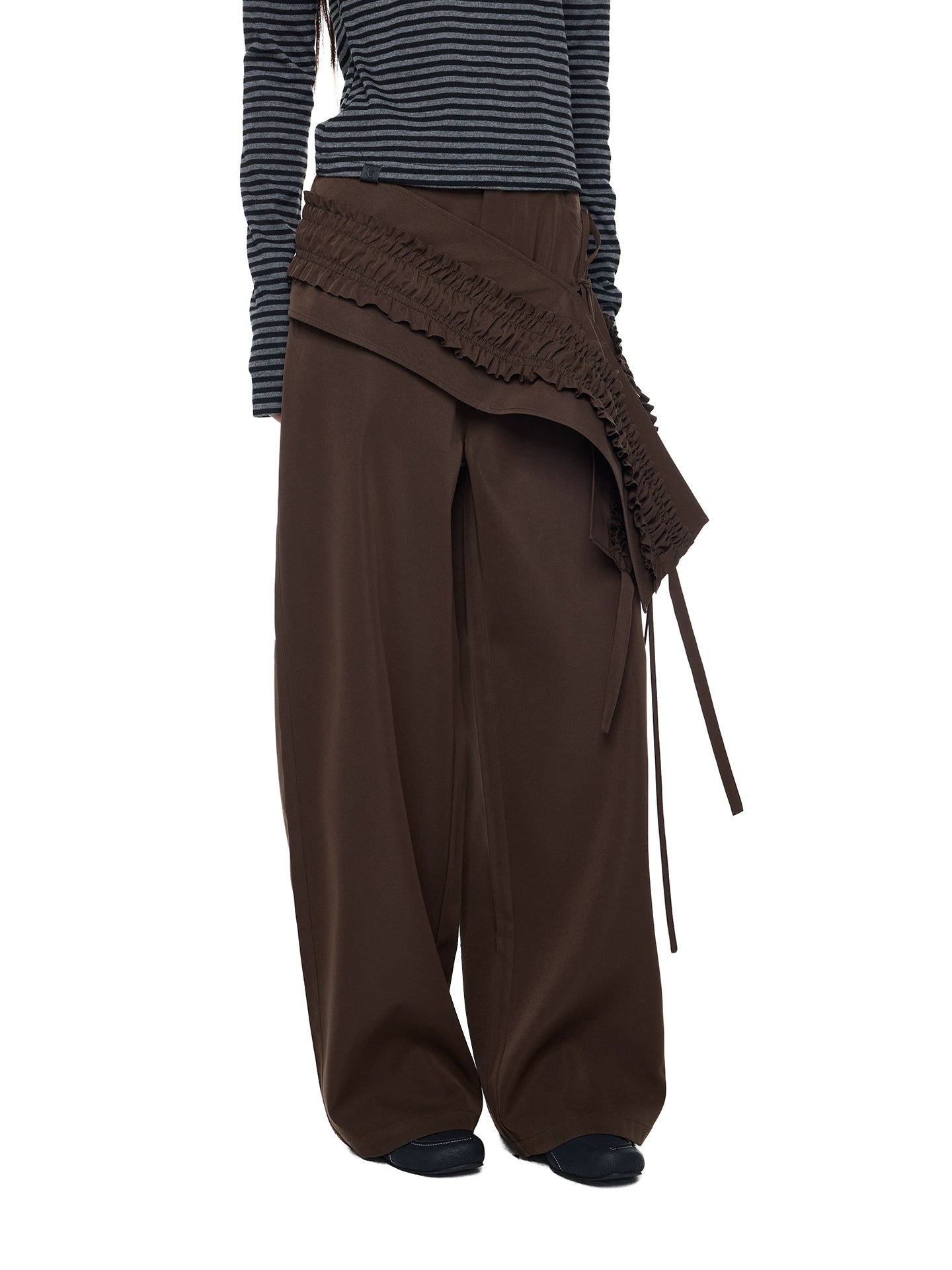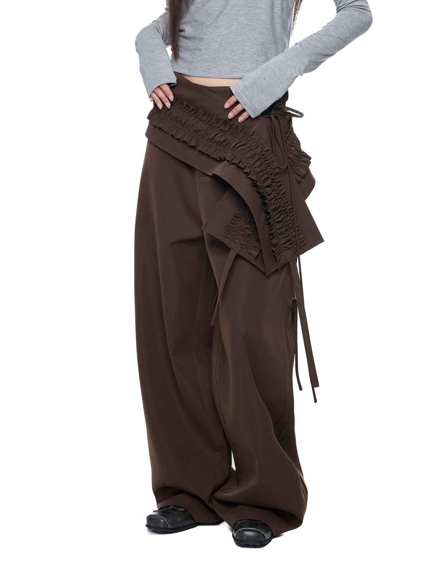 سروال واسع الساقين ذو طيات وكرانيش من قطعتين