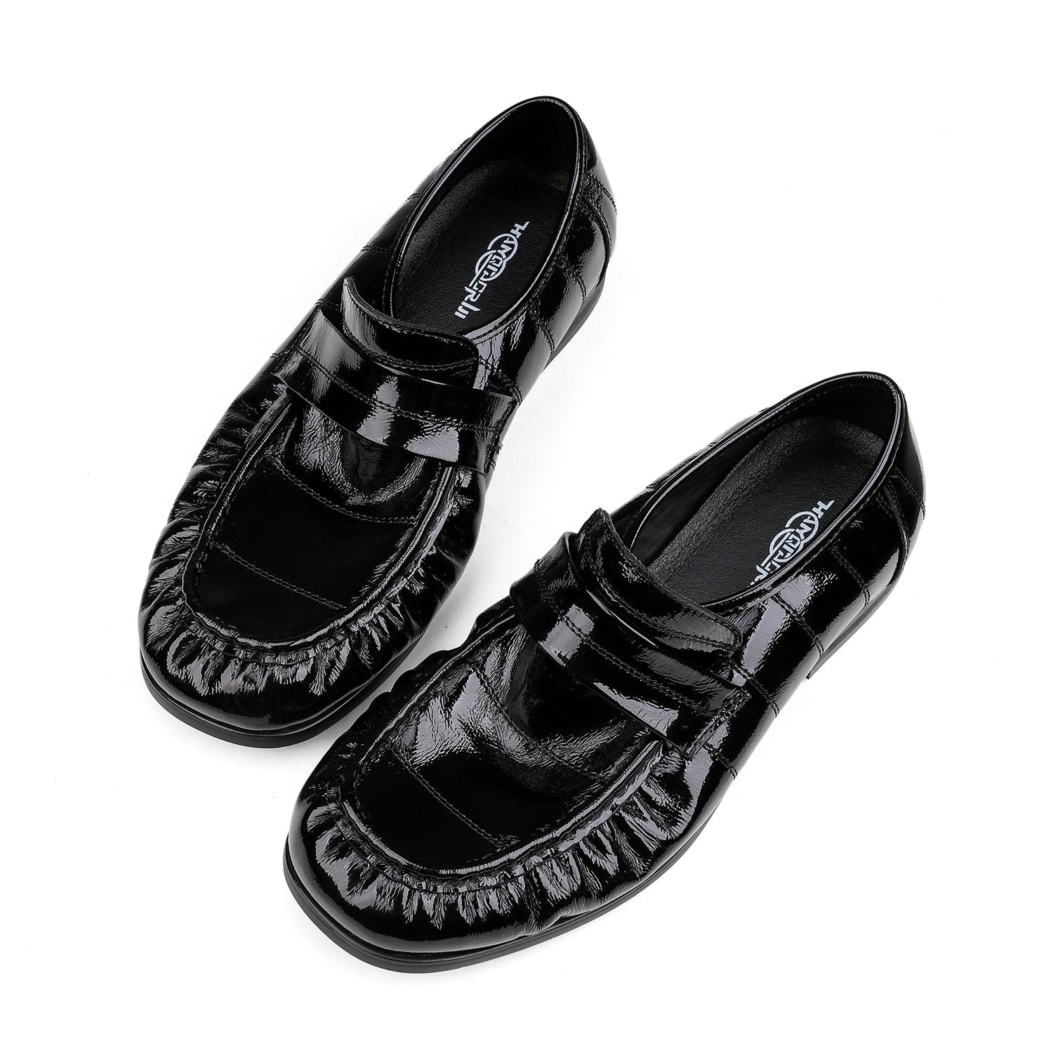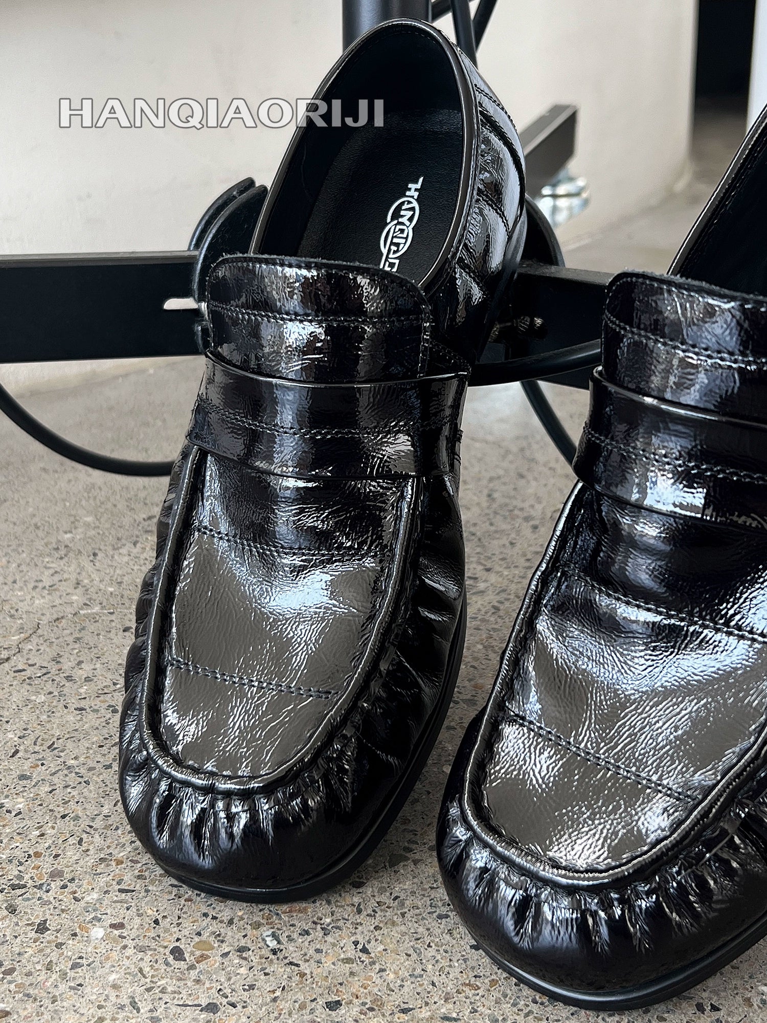 أحذية لوفر جلدية مجعدة سهلة الارتداء