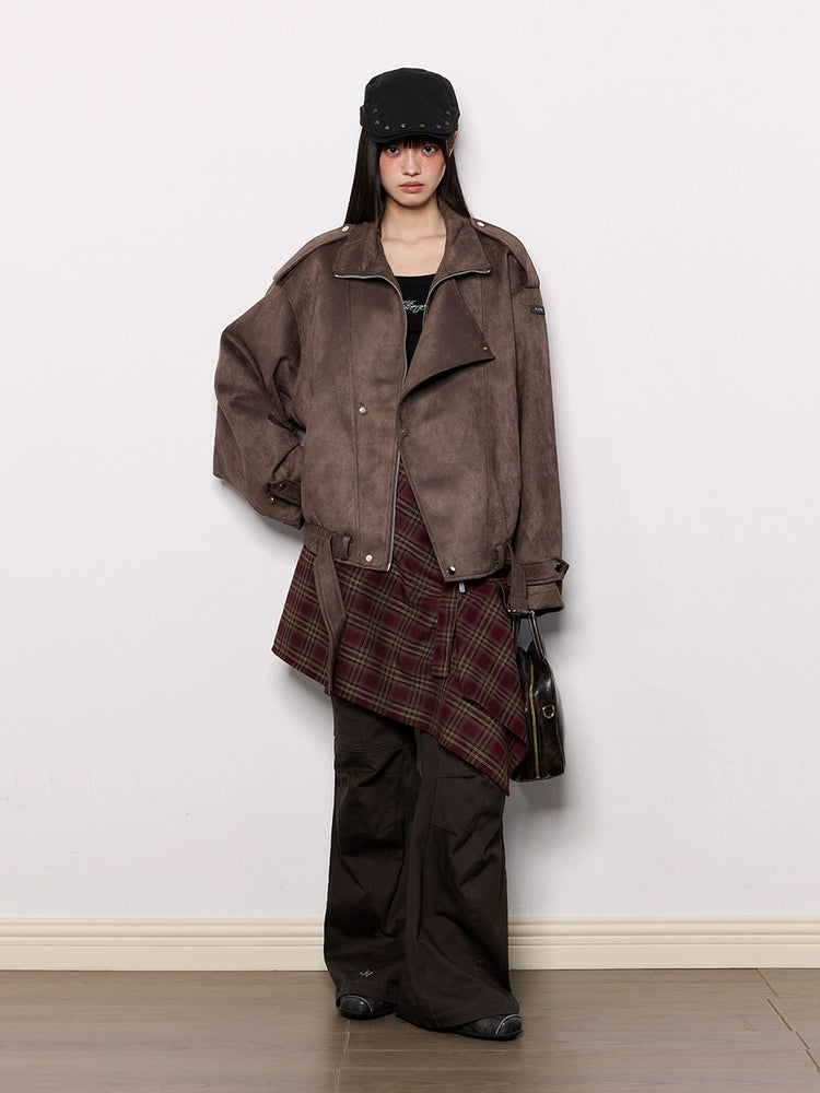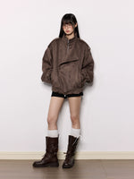 جاكيت كاجوال فضفاض من جلد الغنم بتصميم ريترو