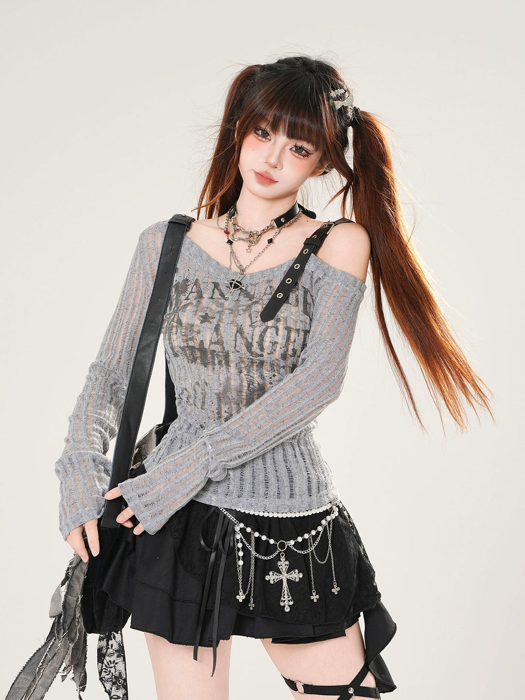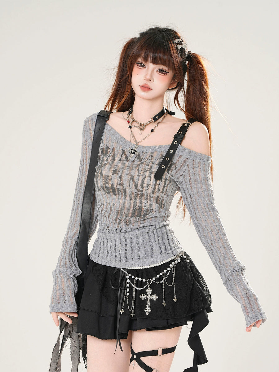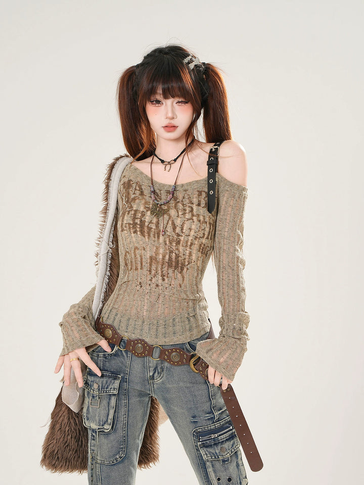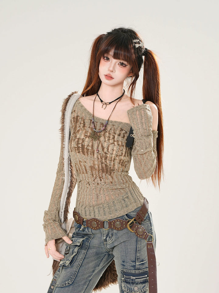Off-Shoulder Ribbed Long Sleeve Top