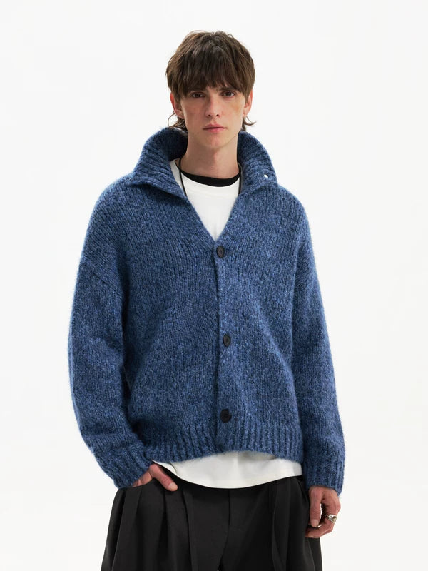 Cashmere Blend High Neck Knit Cardigan