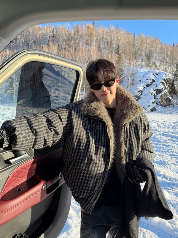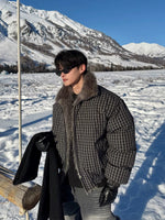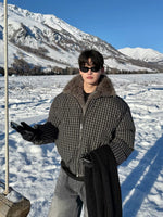 Houndstooth Fur Collar Puffer Jacket