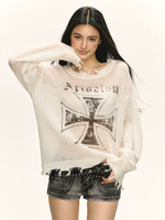Distressed Loose Knit Long Sleeve Sweater