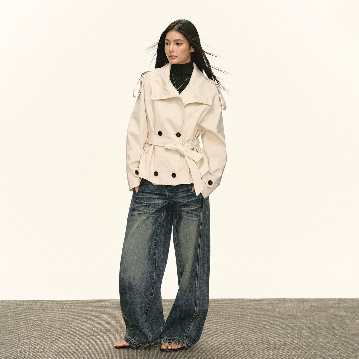 Double-Breasted Belted Short Jacket