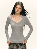 Ribbed Long Sleeve Henley T-Shirt