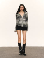 Zip-Up Knit Hooded Sweatshirt