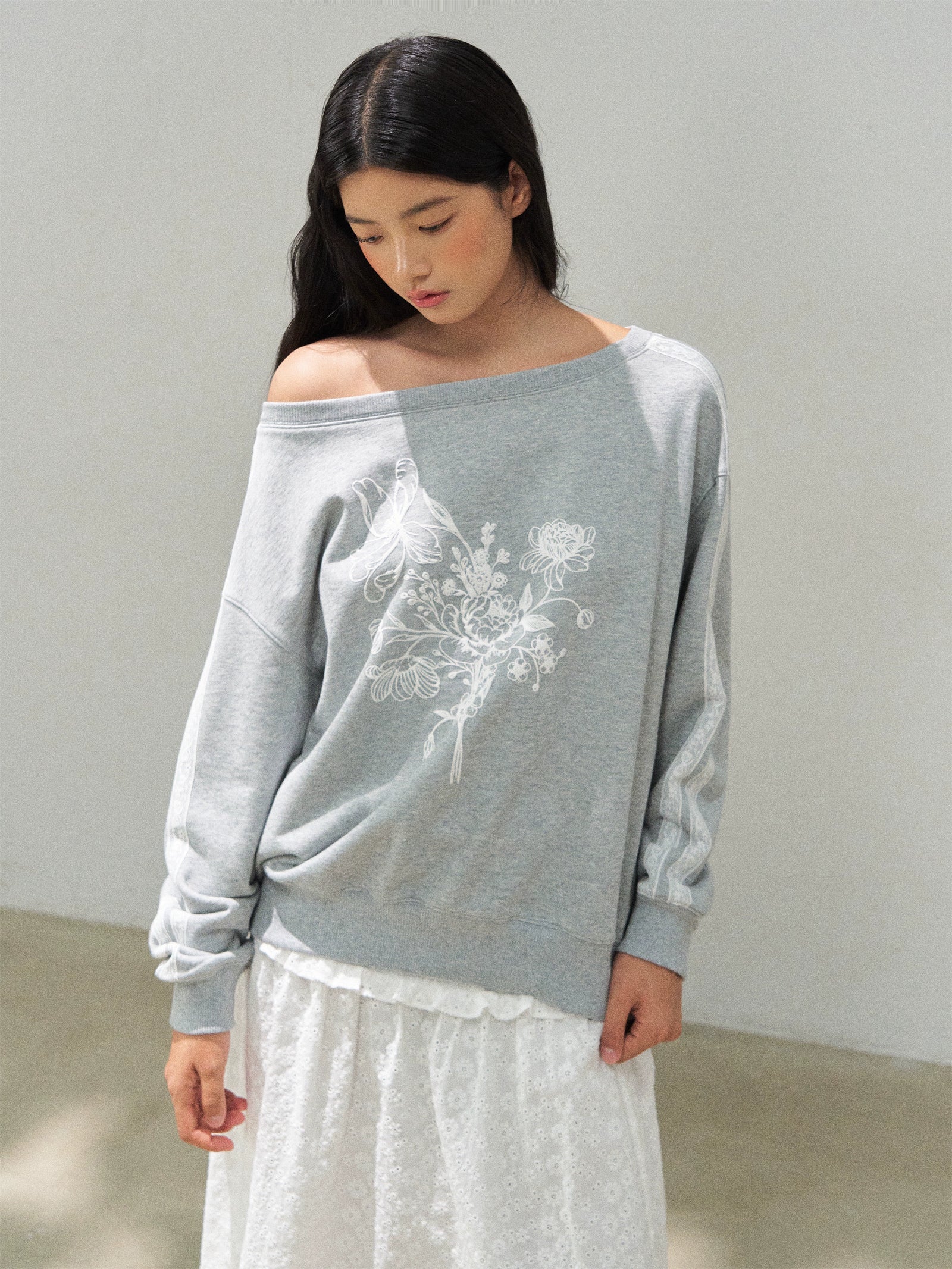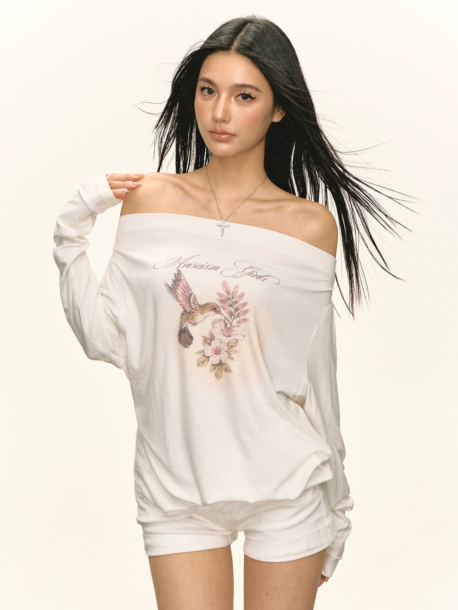 Floral Graphic Off-Shoulder Long Sleeve Top