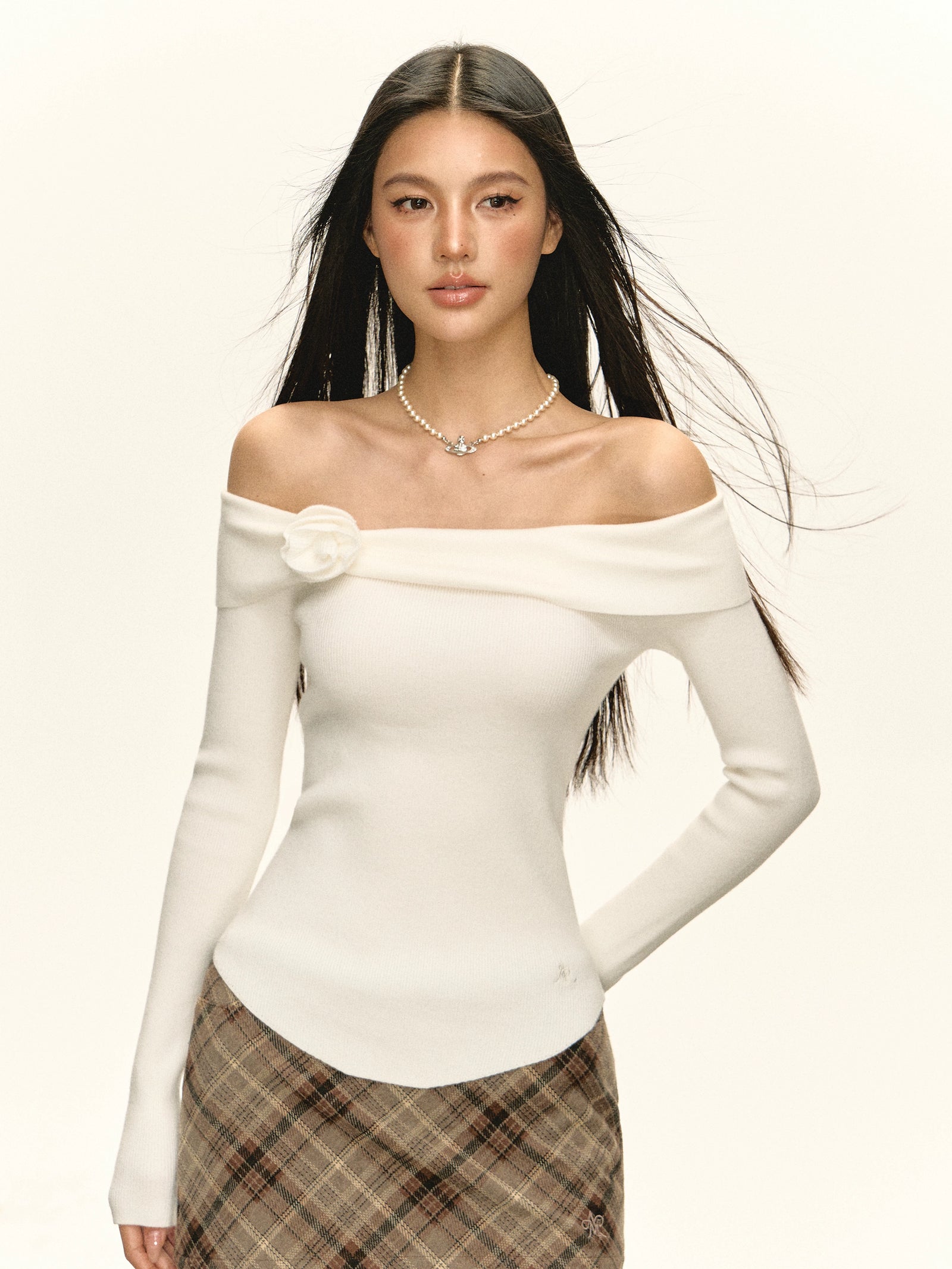 Off Shoulder Ruched Ribbed Long Sleeve Top