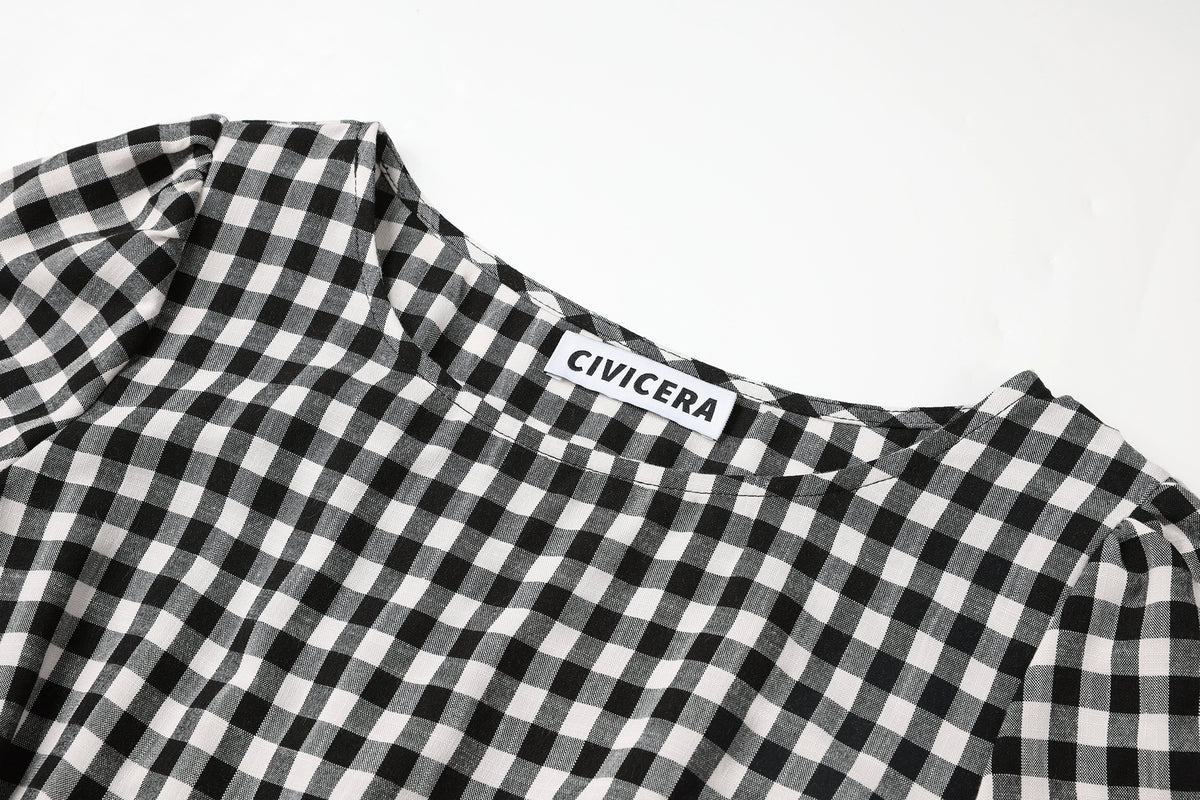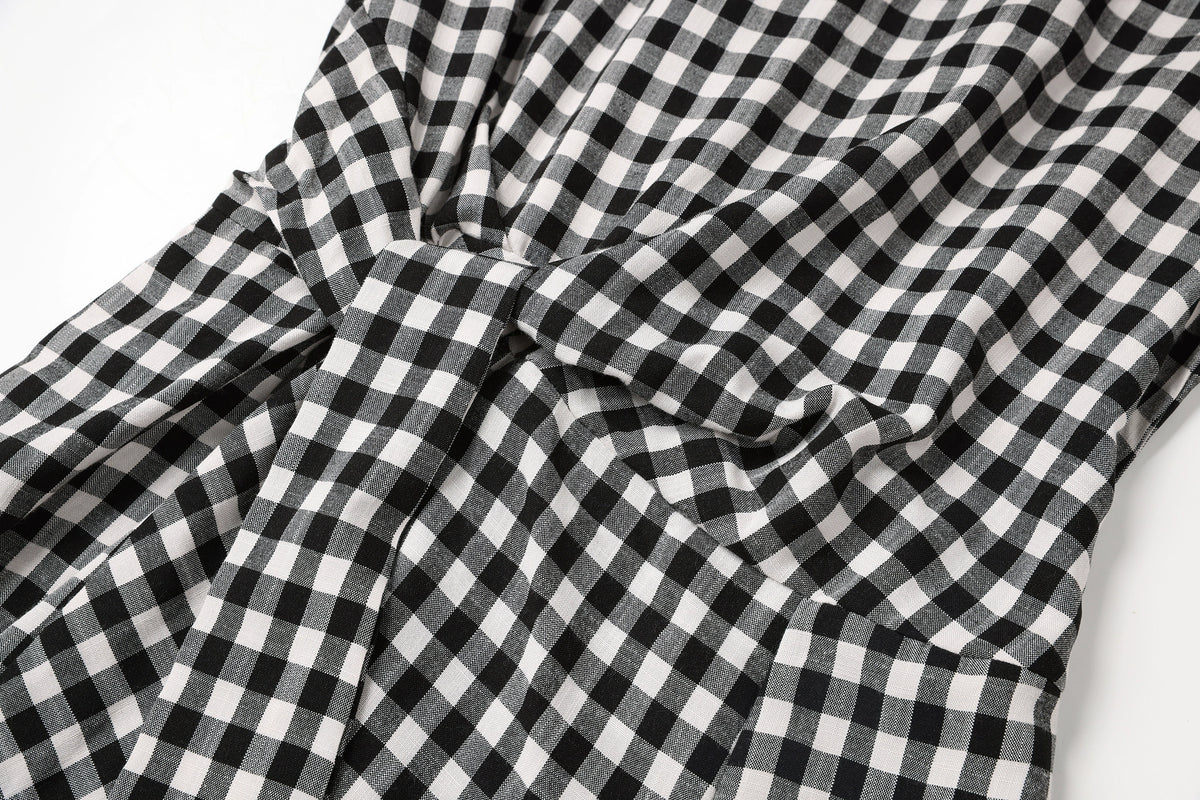 Plaid A-line Short Sleeve Midi Dress