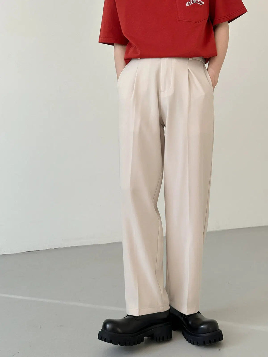Casual Elastic Waist Suit Straight Pants