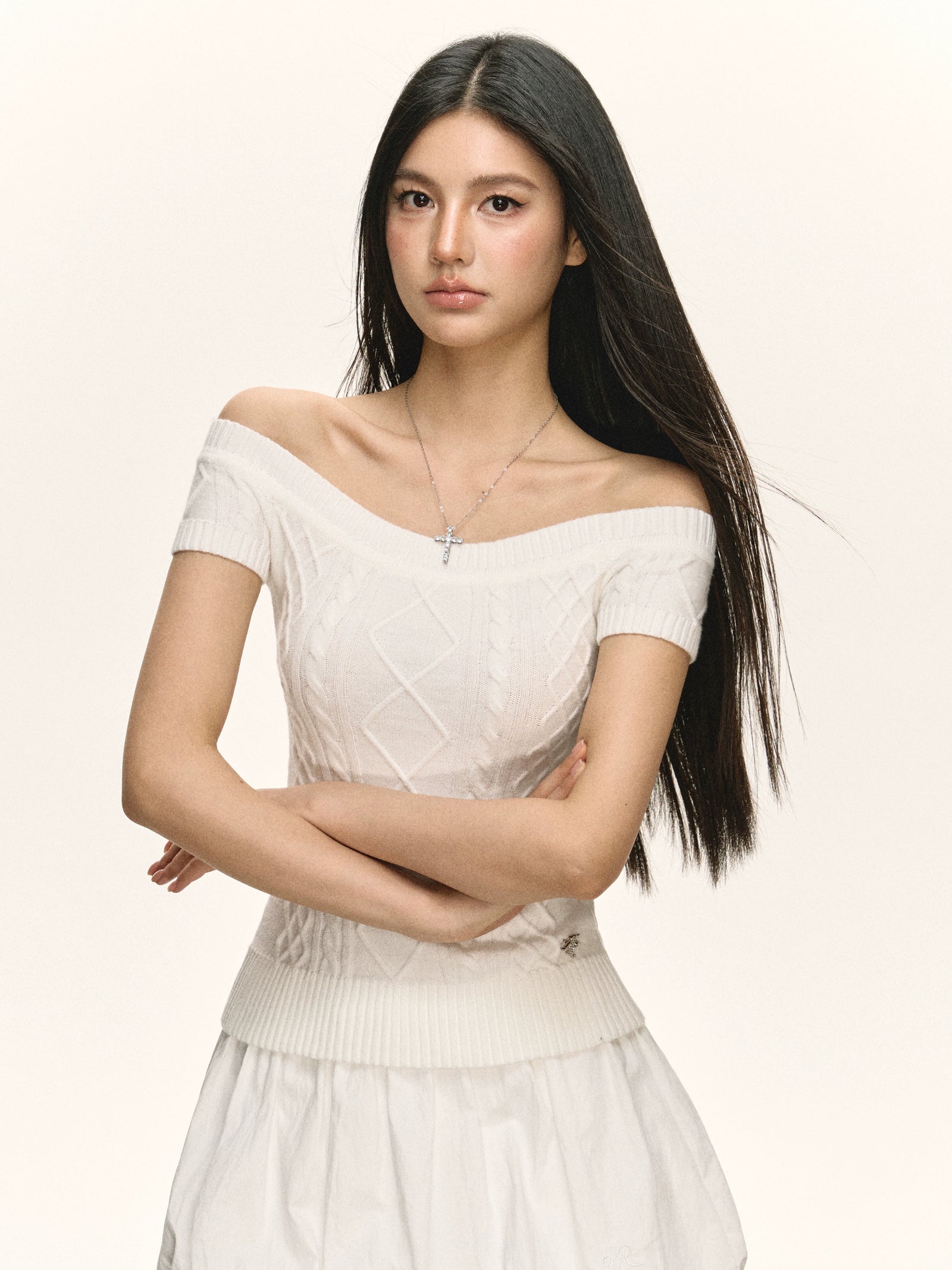 Off Shoulder Slim Fit Ribbed T-Shirt