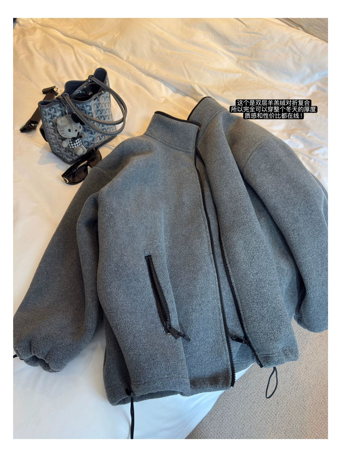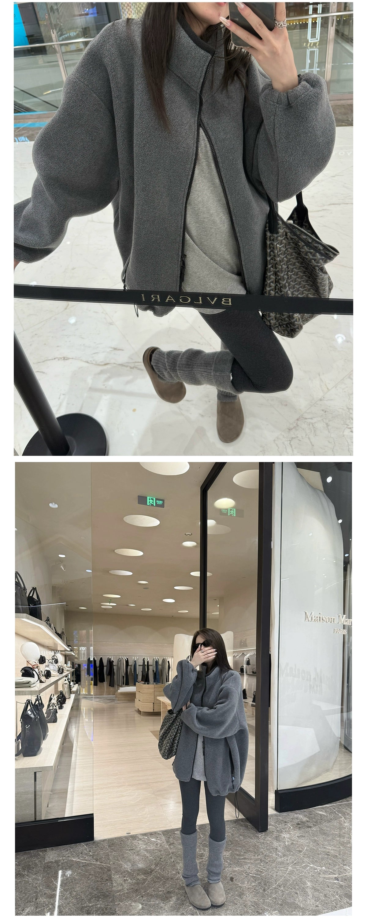 Double-Sided Fleece Stand Collar Zip Hoodie