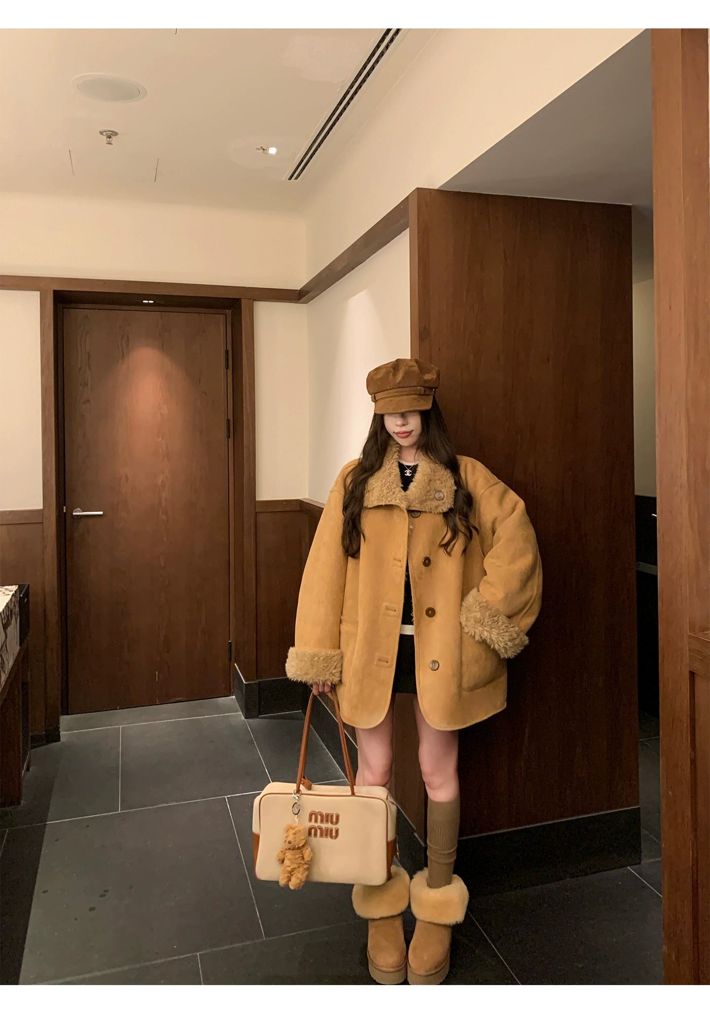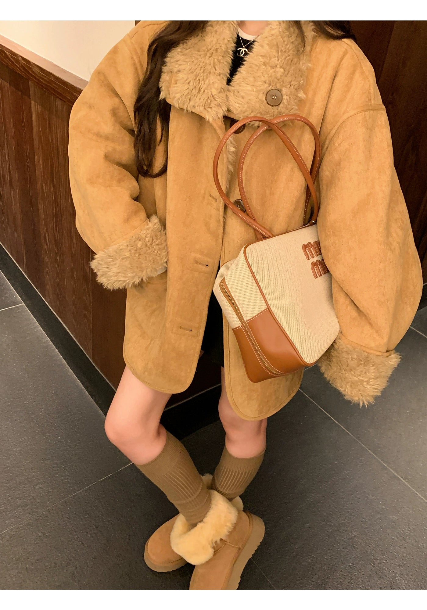 Lambswool Suede Motorcycle Fur Coat