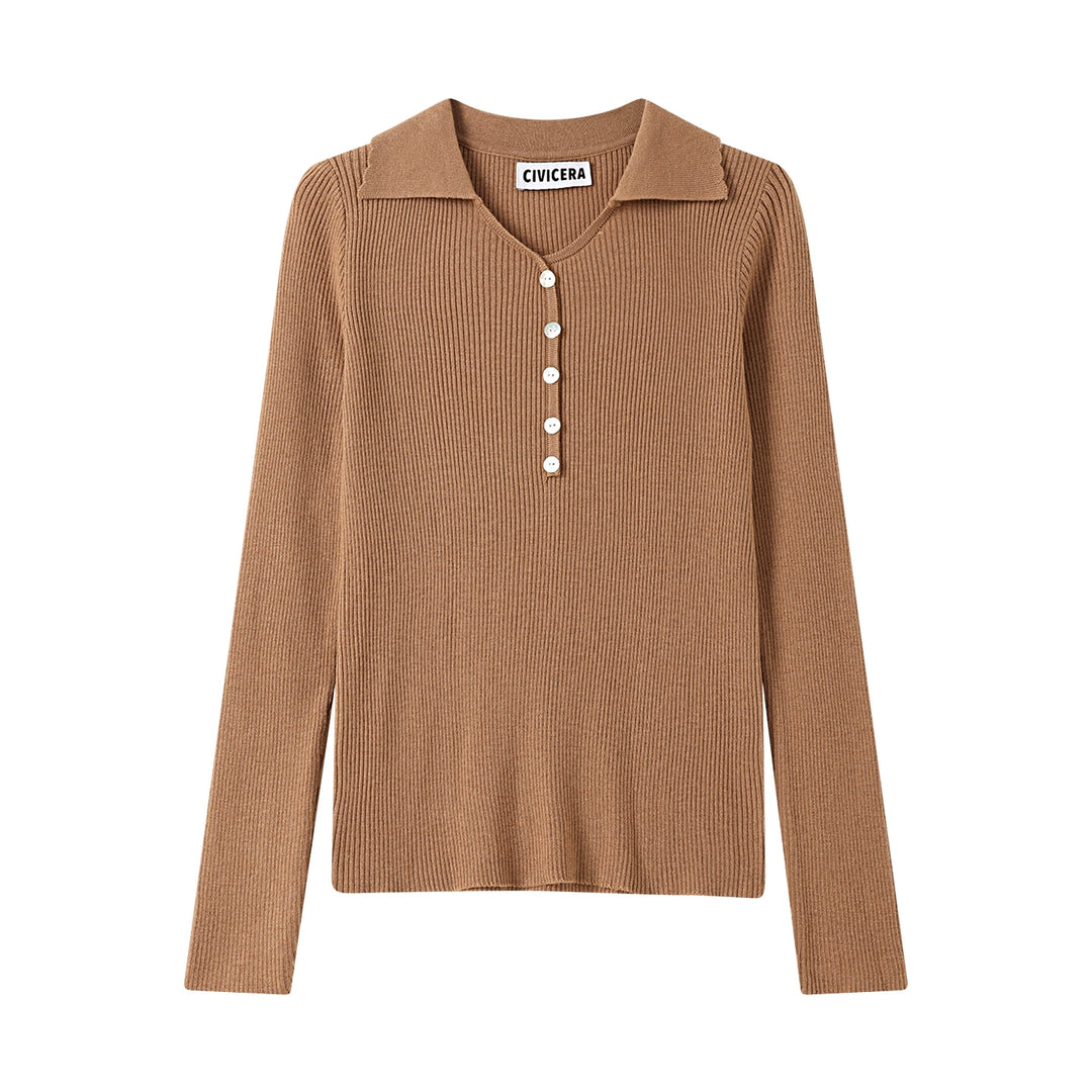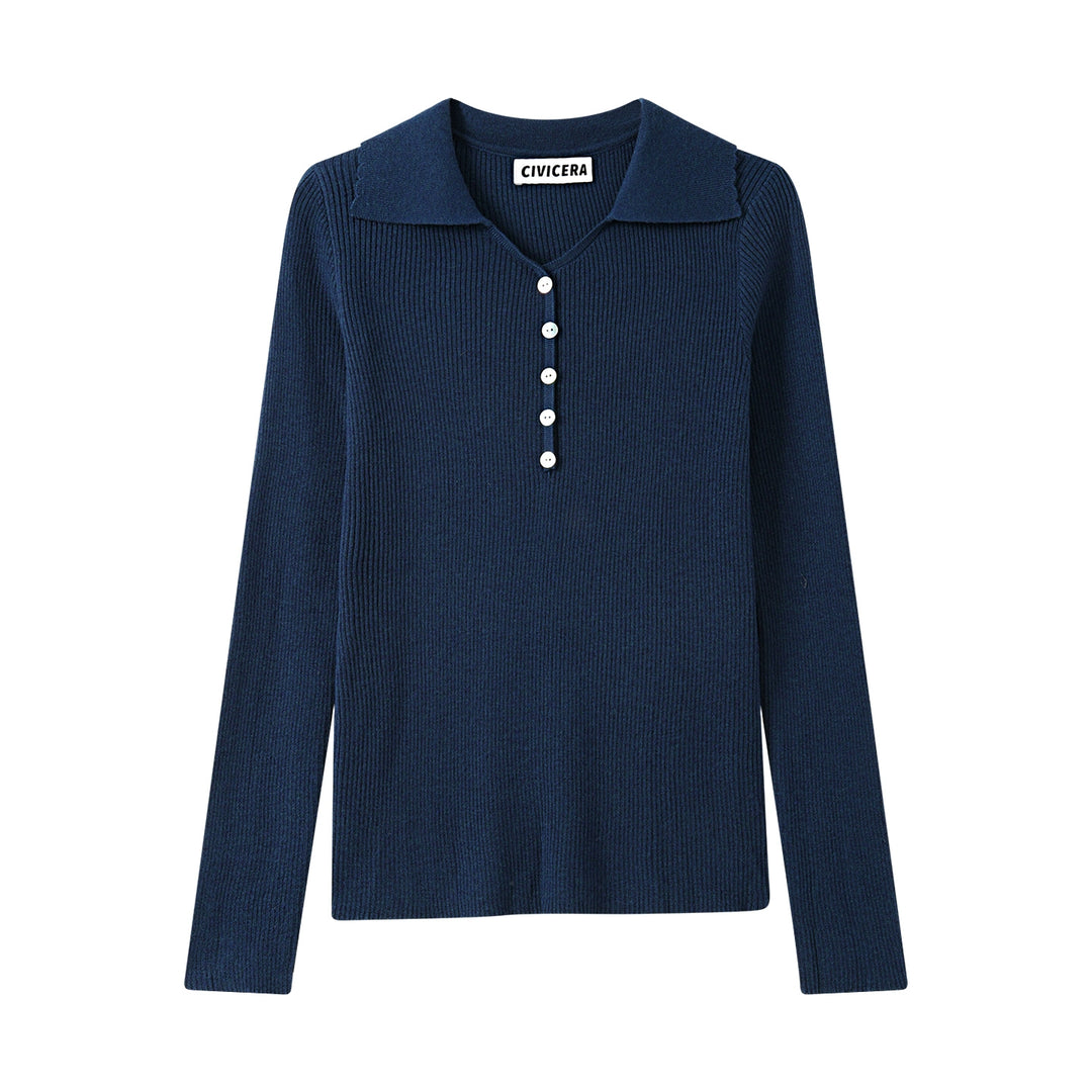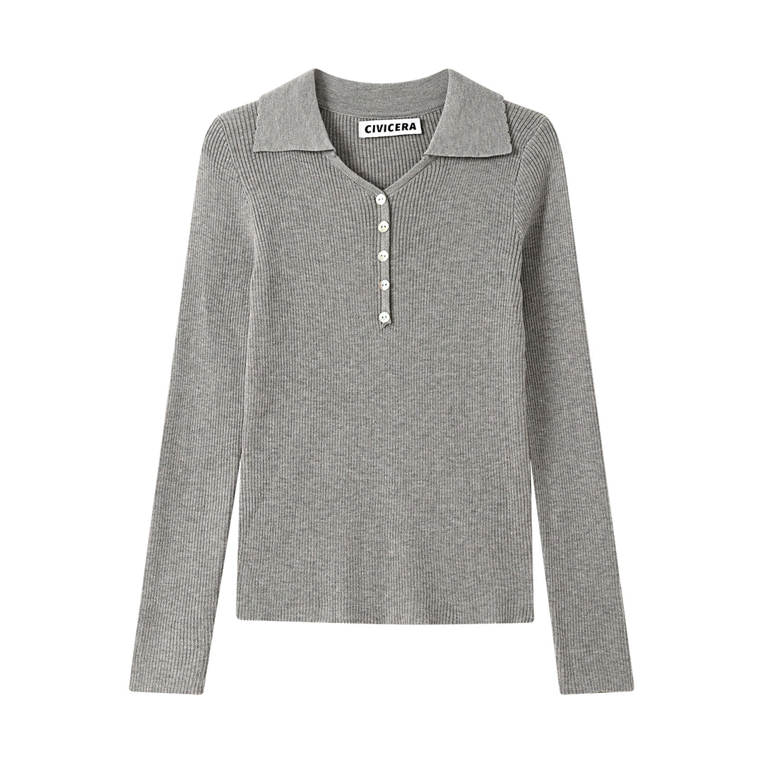 Lapel Knitted Button Bottoming Shirt