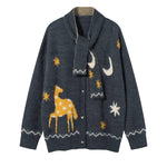 Christmas Reindeer Embroidered V-Neck Cardigan