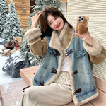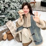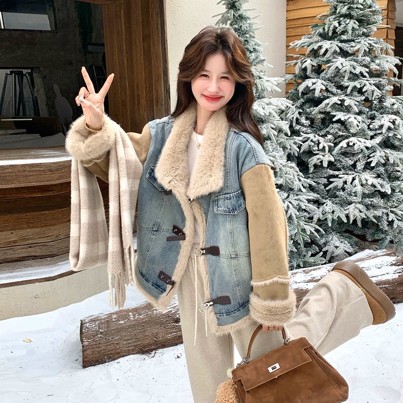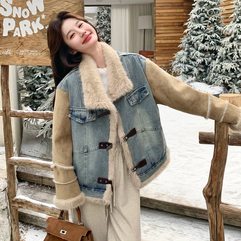 Denim Patchwork Faux Fur Lined Jacket