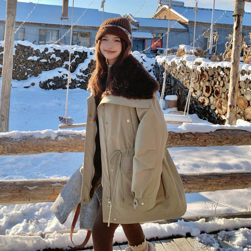 Fur Collar Mid-Length Down Jacket