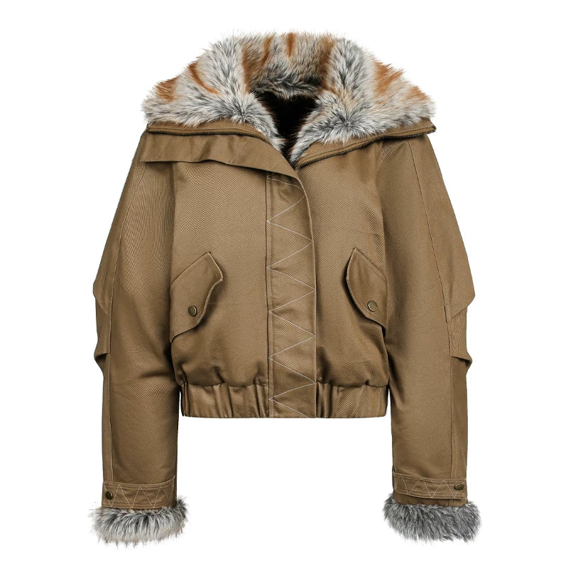 Oversized Fur Collar Retro Cotton Jacket