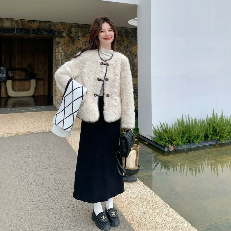 Short Faux Fur Toggle Cardigan