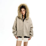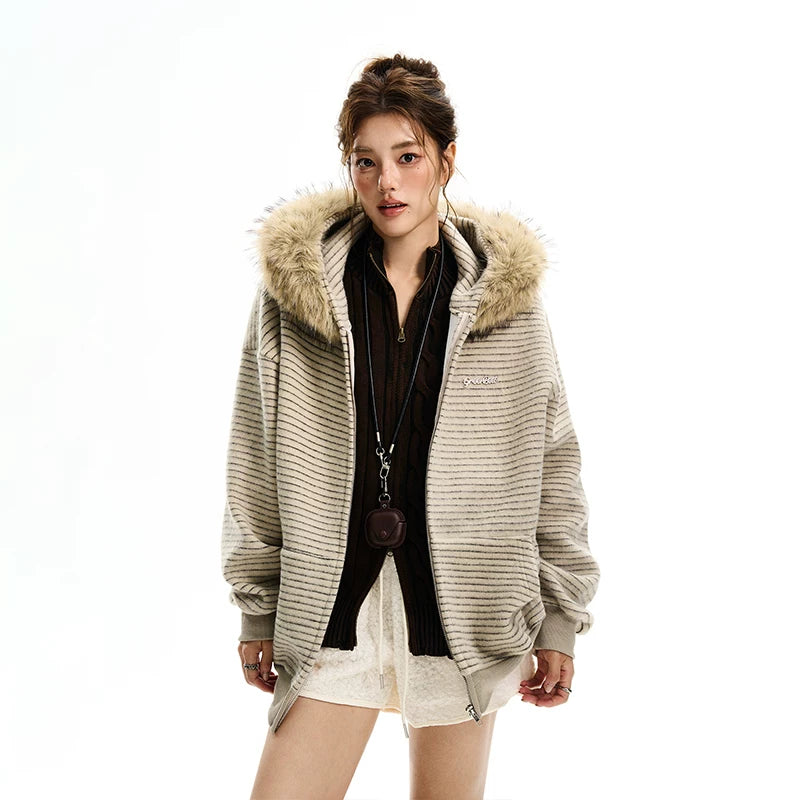 Fur Collar Striped Hooded Sweatshirt