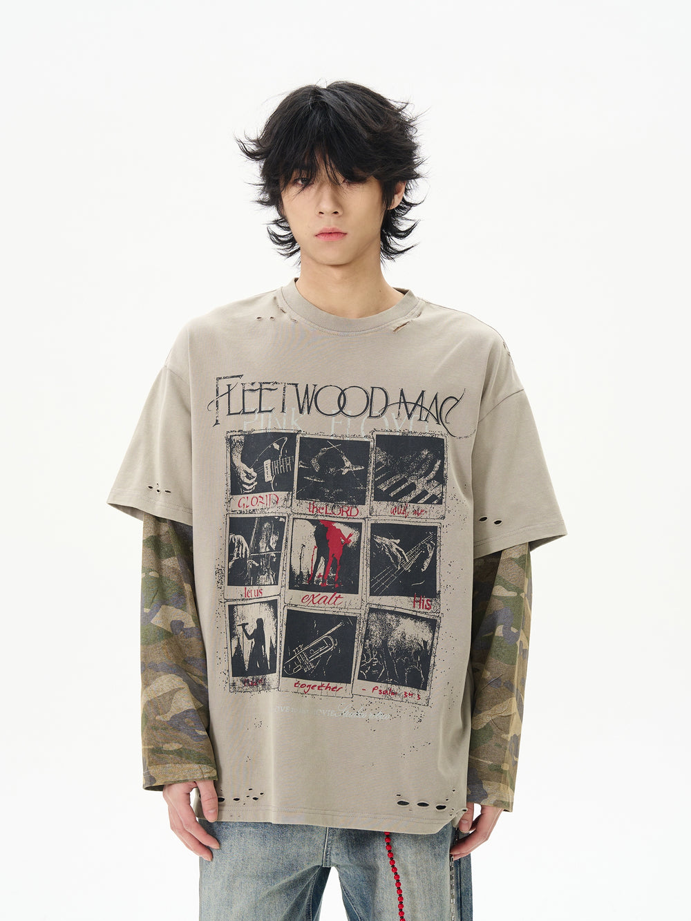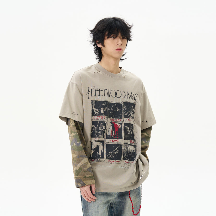 Camouflage Layered Long-Sleeve Pullover