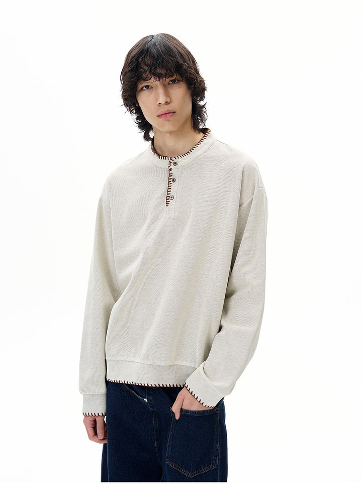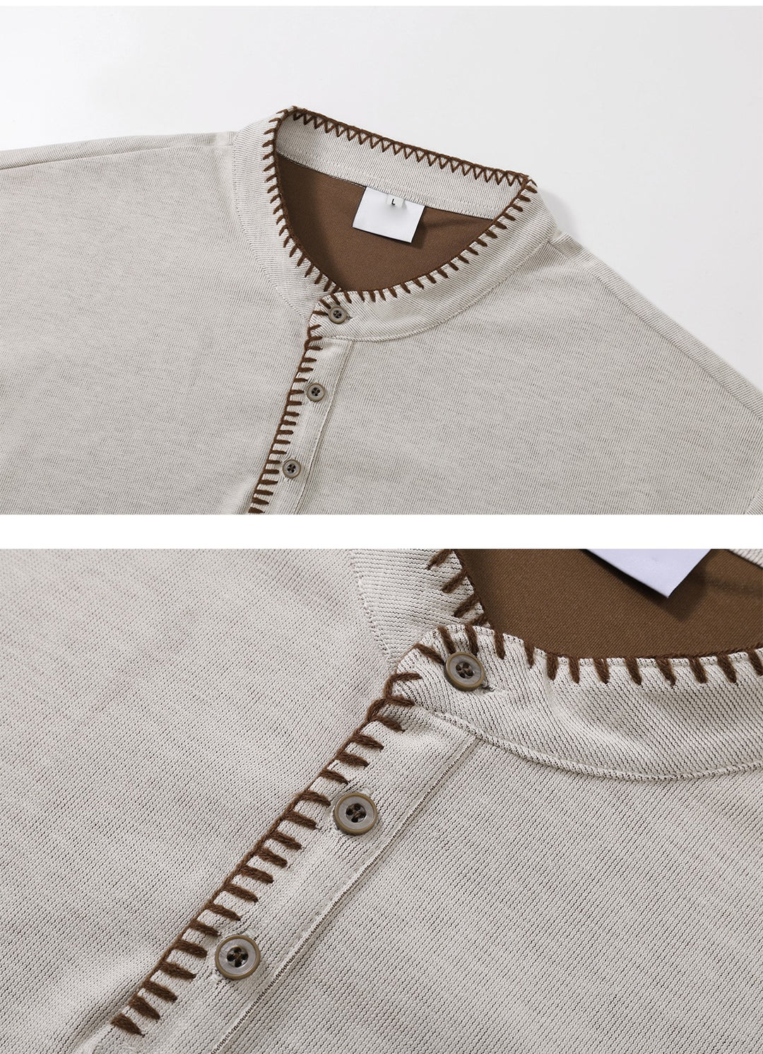 Hand-Stitched Henry Collar Knitted Top
