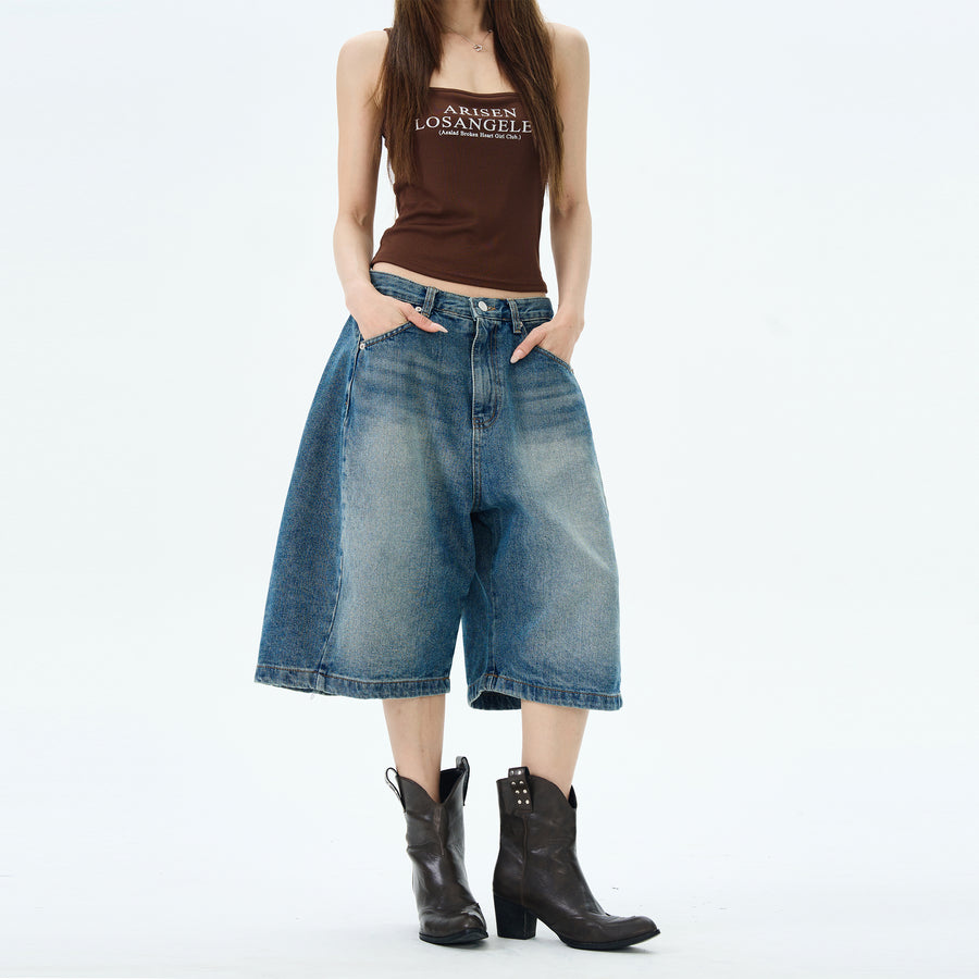Wide Leg Cropped Denim Pants