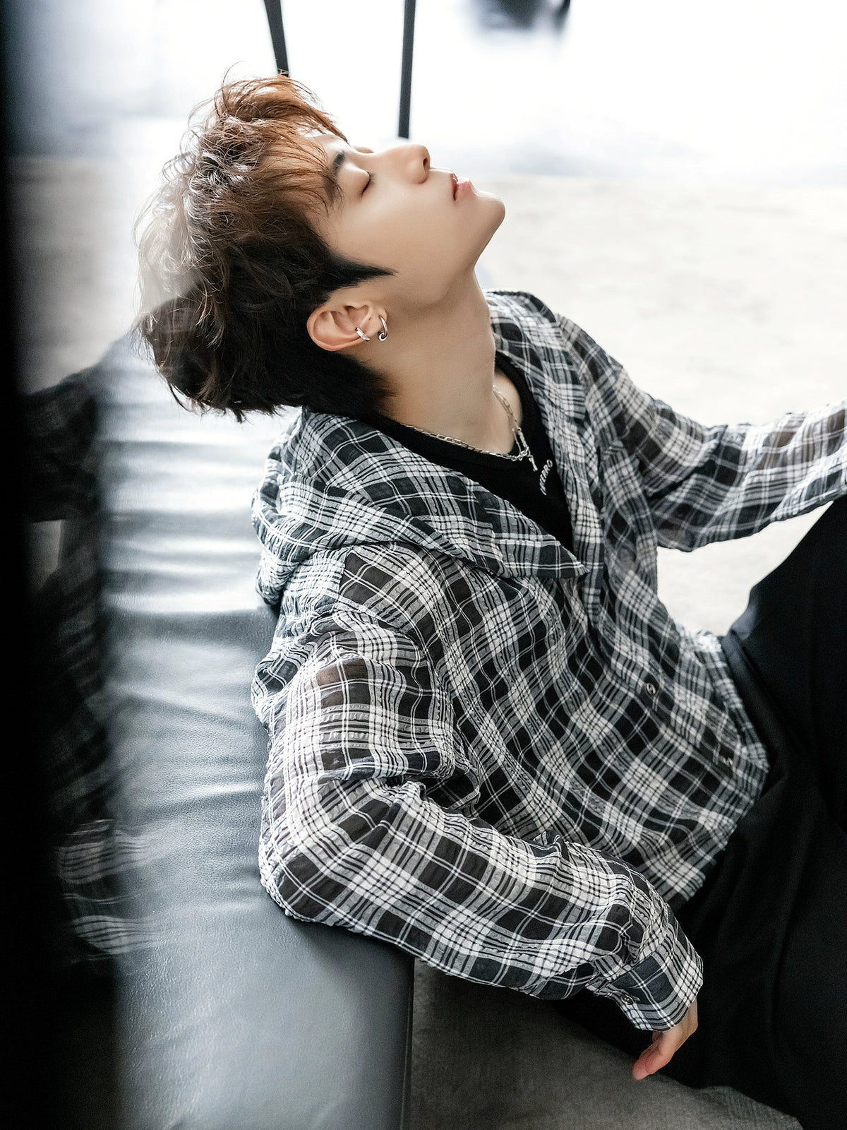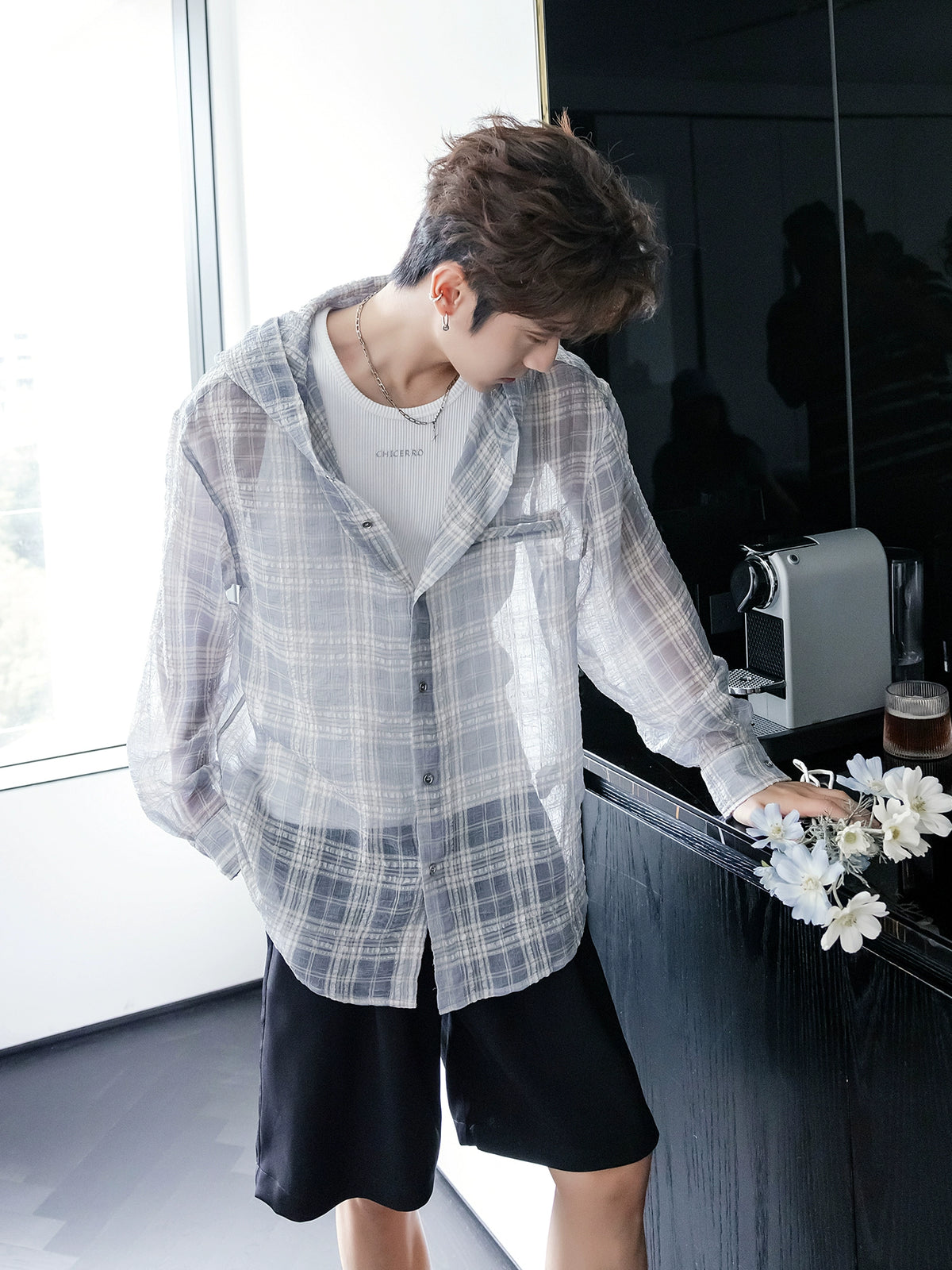 Plaid Hooded Lightweight Sheer Sun Shirt