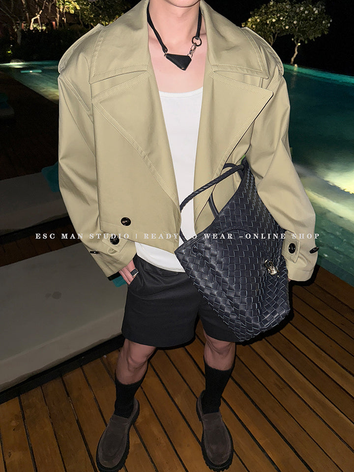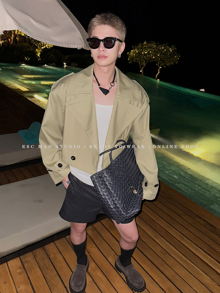 Khaki Lapel Cropped Jacket