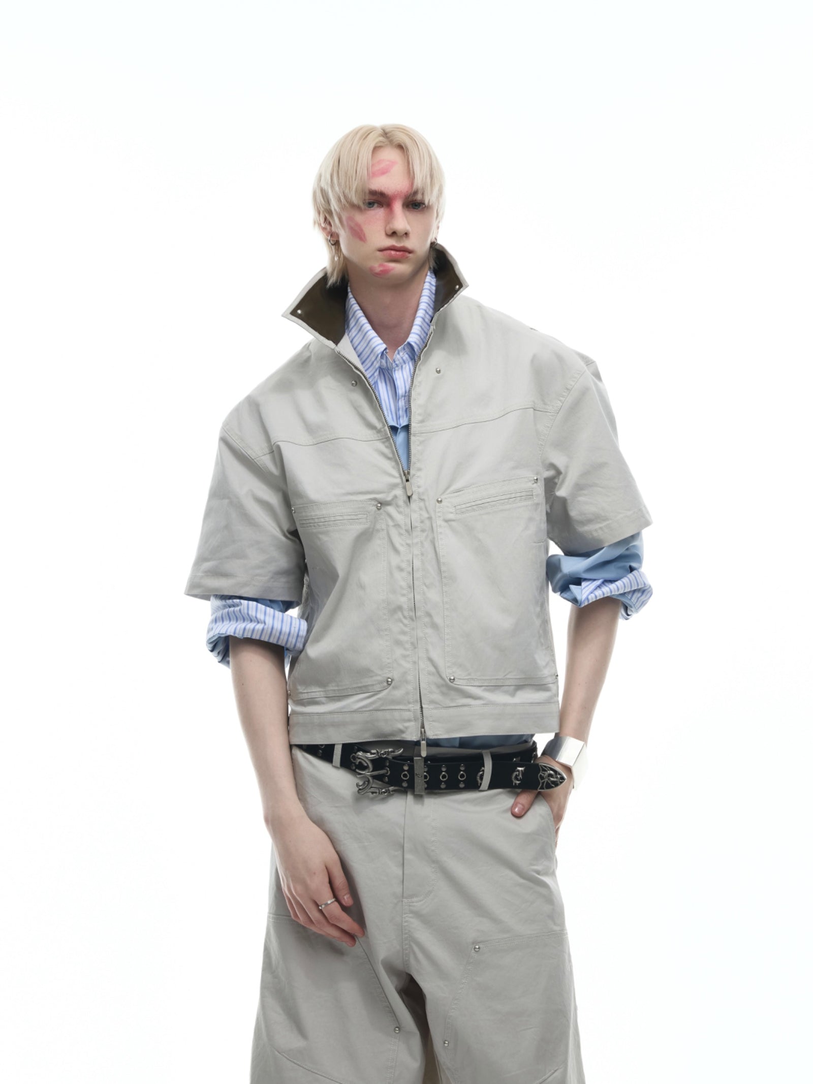 Deconstructed Pleated Boxy Fit Short Sleeve Pullover