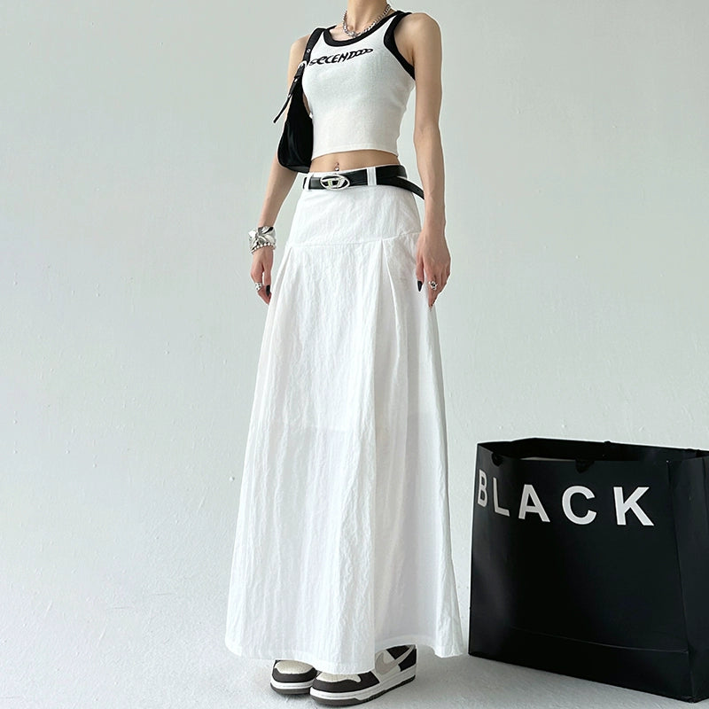 High Waist Pleated Long A-Line Skirt