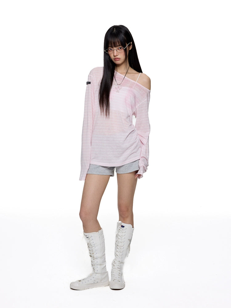 Off-Shoulder Long Sleeve Loose Turtleneck