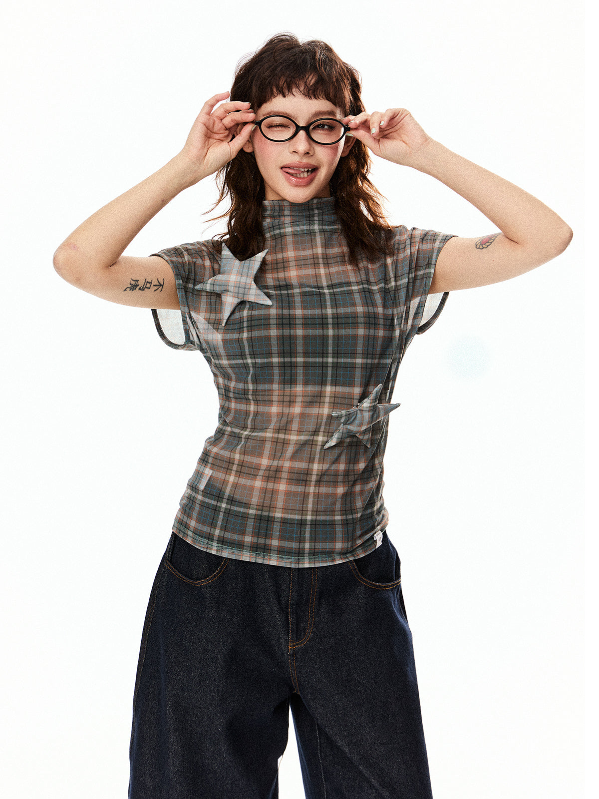 Mesh Star Patch Turtleneck Top