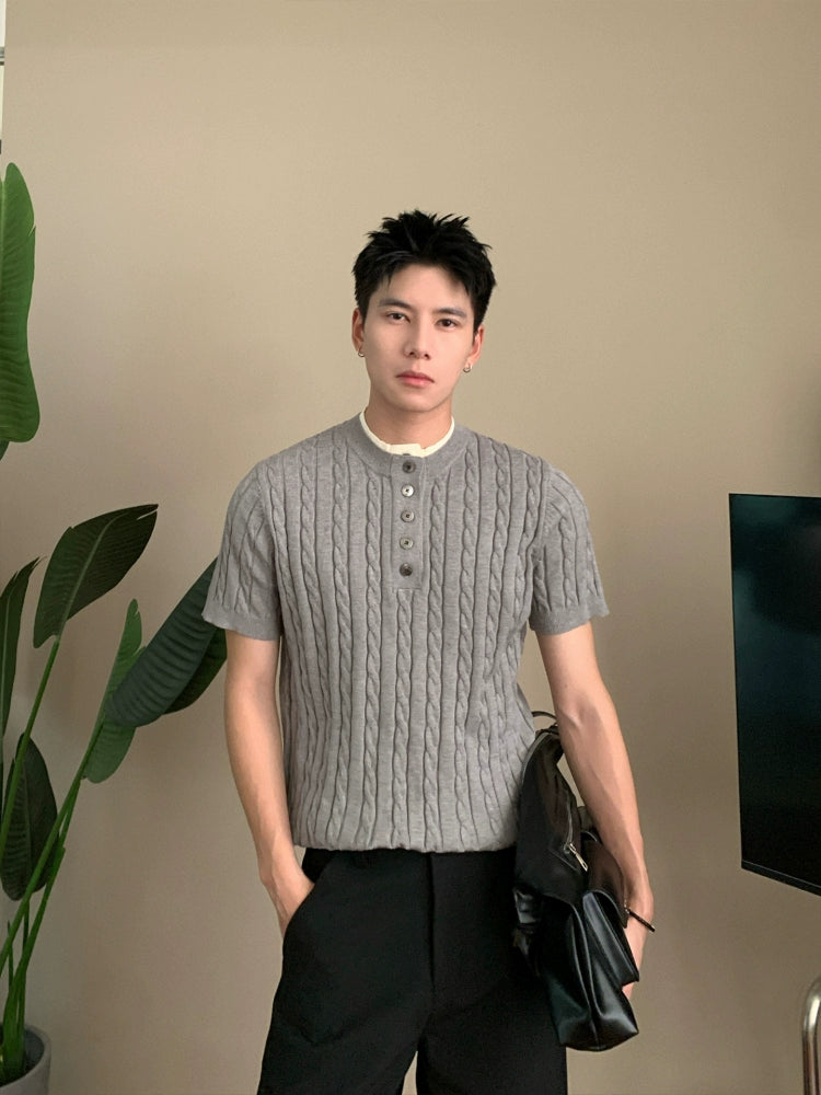 Cable Knit Short Sleeve Button Pullover