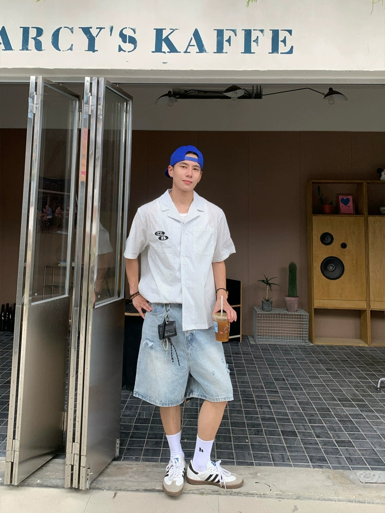 Embroidered Striped Short Sleeve Shirt
