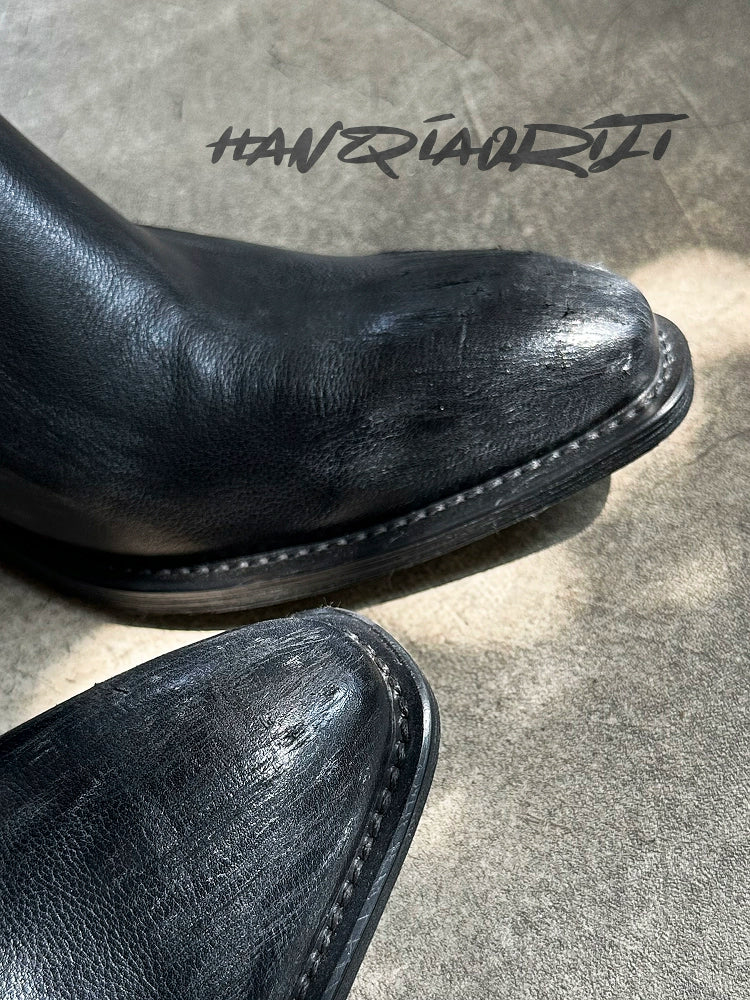 Cowhide Slip-On Pointed Toe Chelsea Shoes