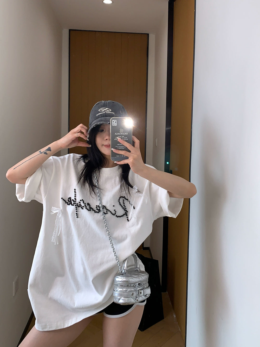 Lace Bow Beaded Short Sleeve T-shirt