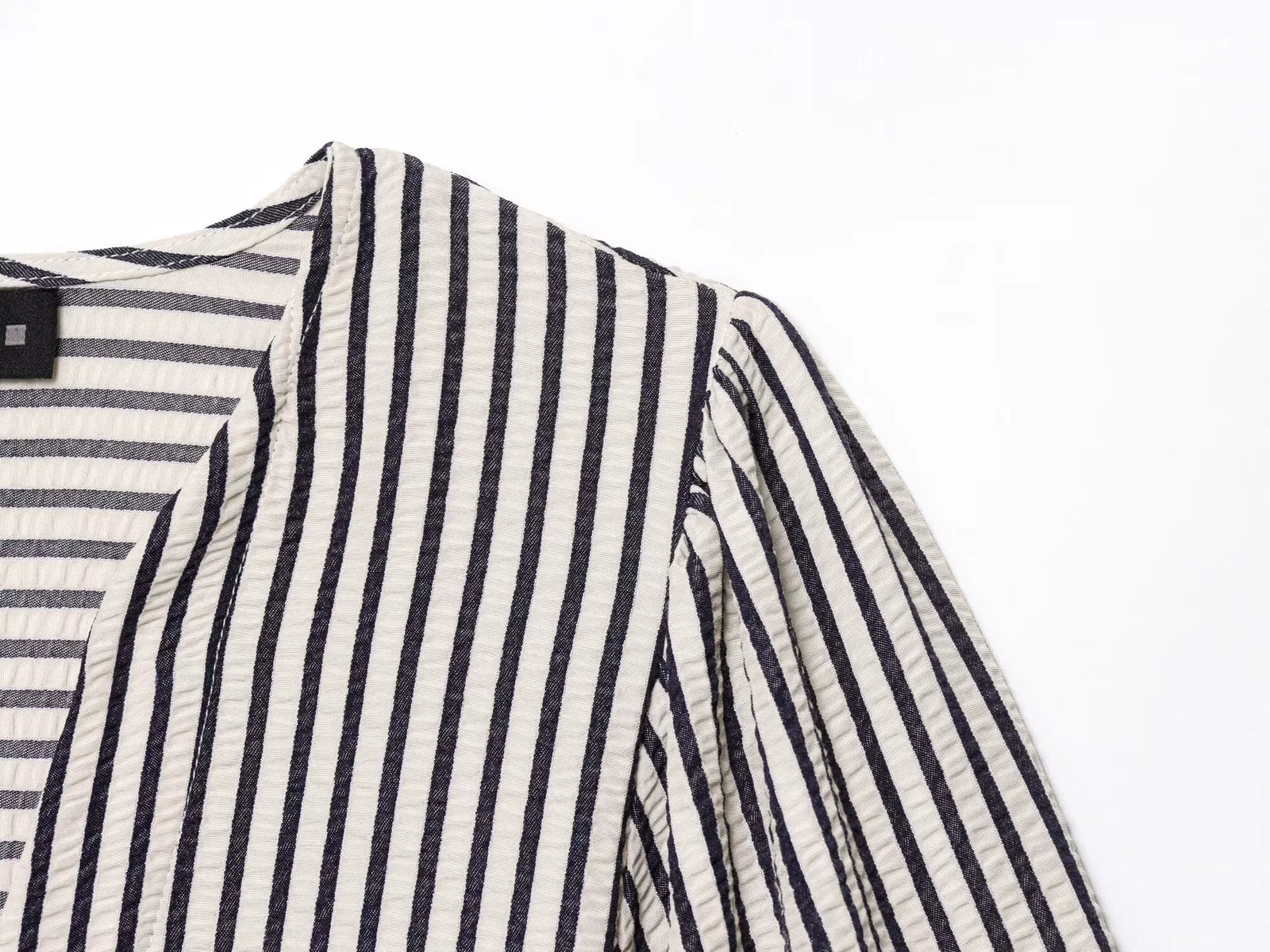 Striped V-Neck Bowknot Short Sleeve Blouse