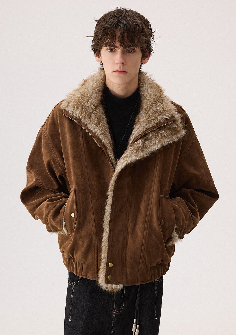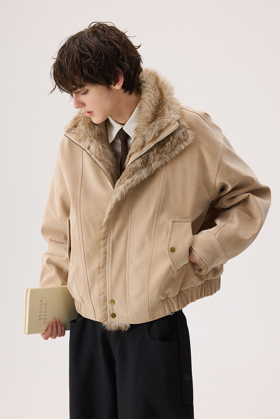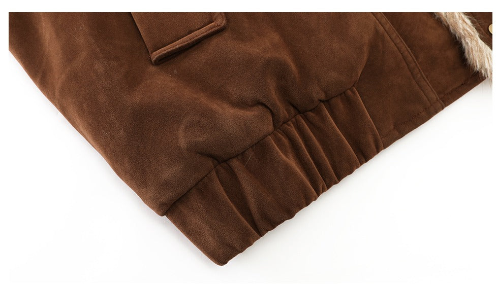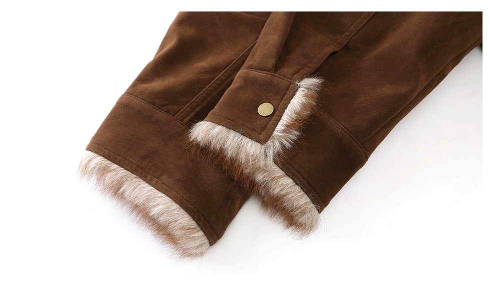 - Manžeta má odhalenou ekologickou umělou kožešinu,, což poskytuje teplo a bohaté vrstvení,, přenášející pocit neformálního retro pracovního oblečení.
