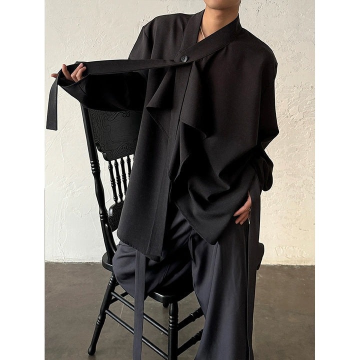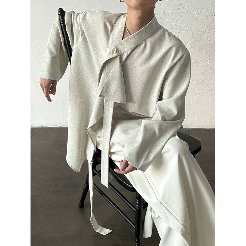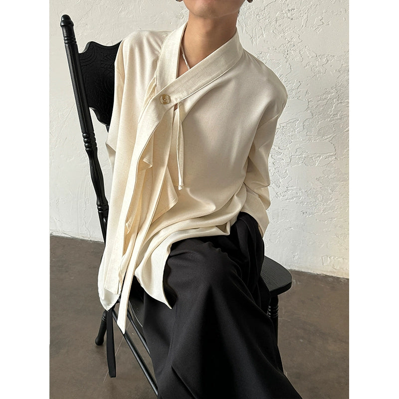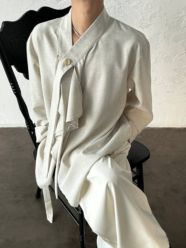 French Ribbon Stand-Up Collar Shirt
