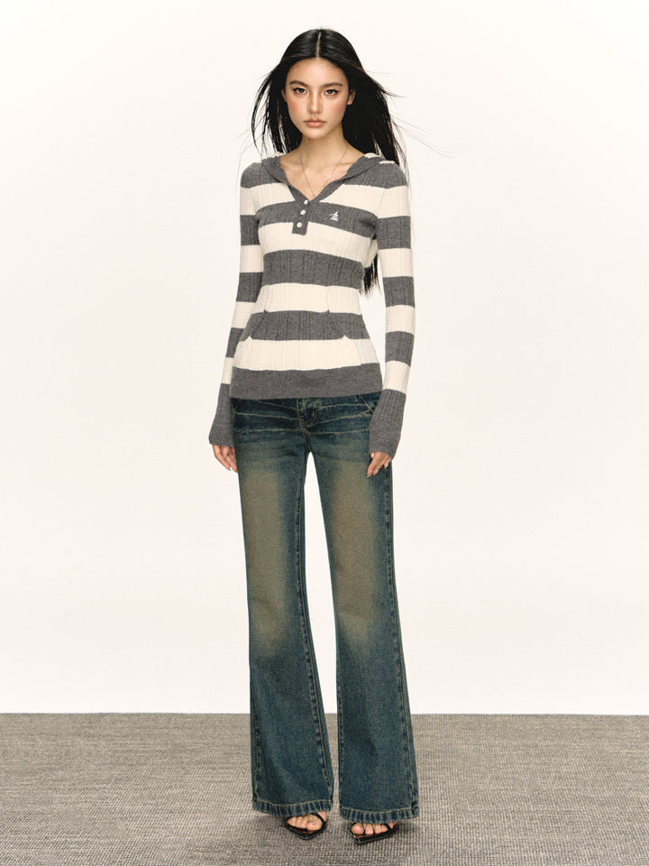 Hooded Slim Fit Striped Sweater