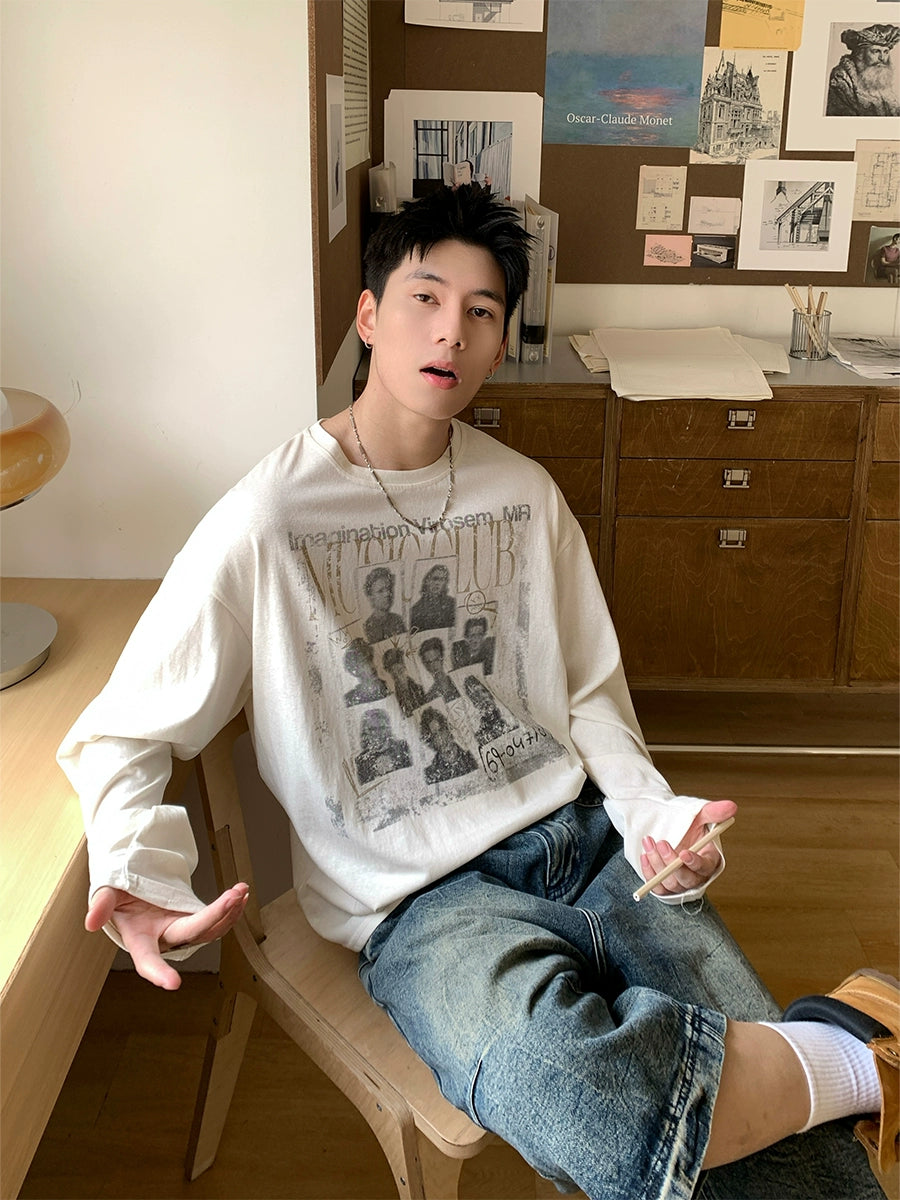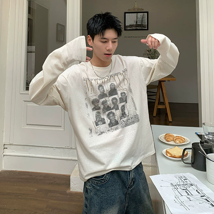 Round Neck Portrait Print Long Sleeve T-shirt