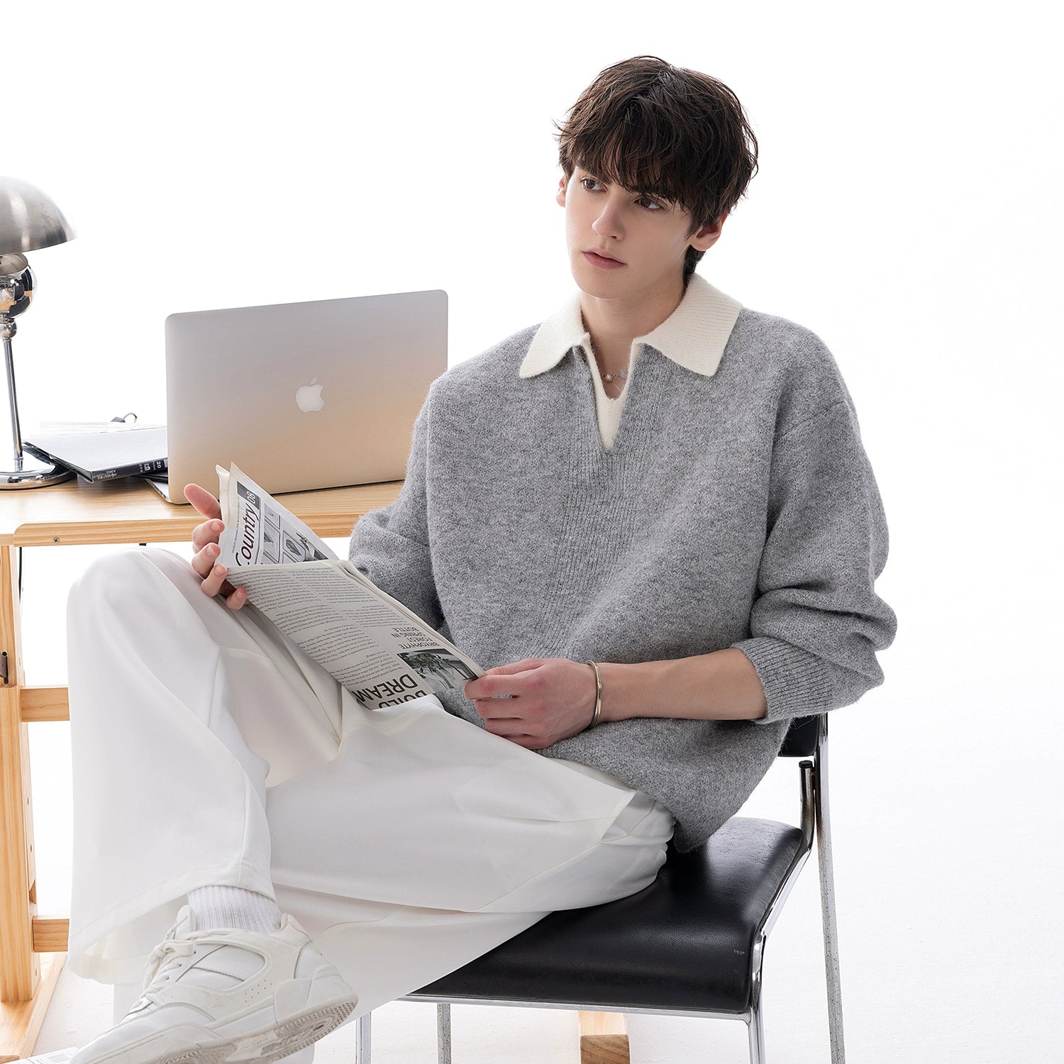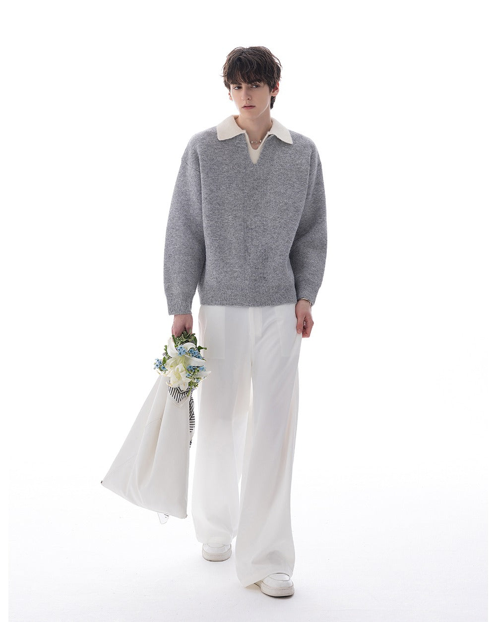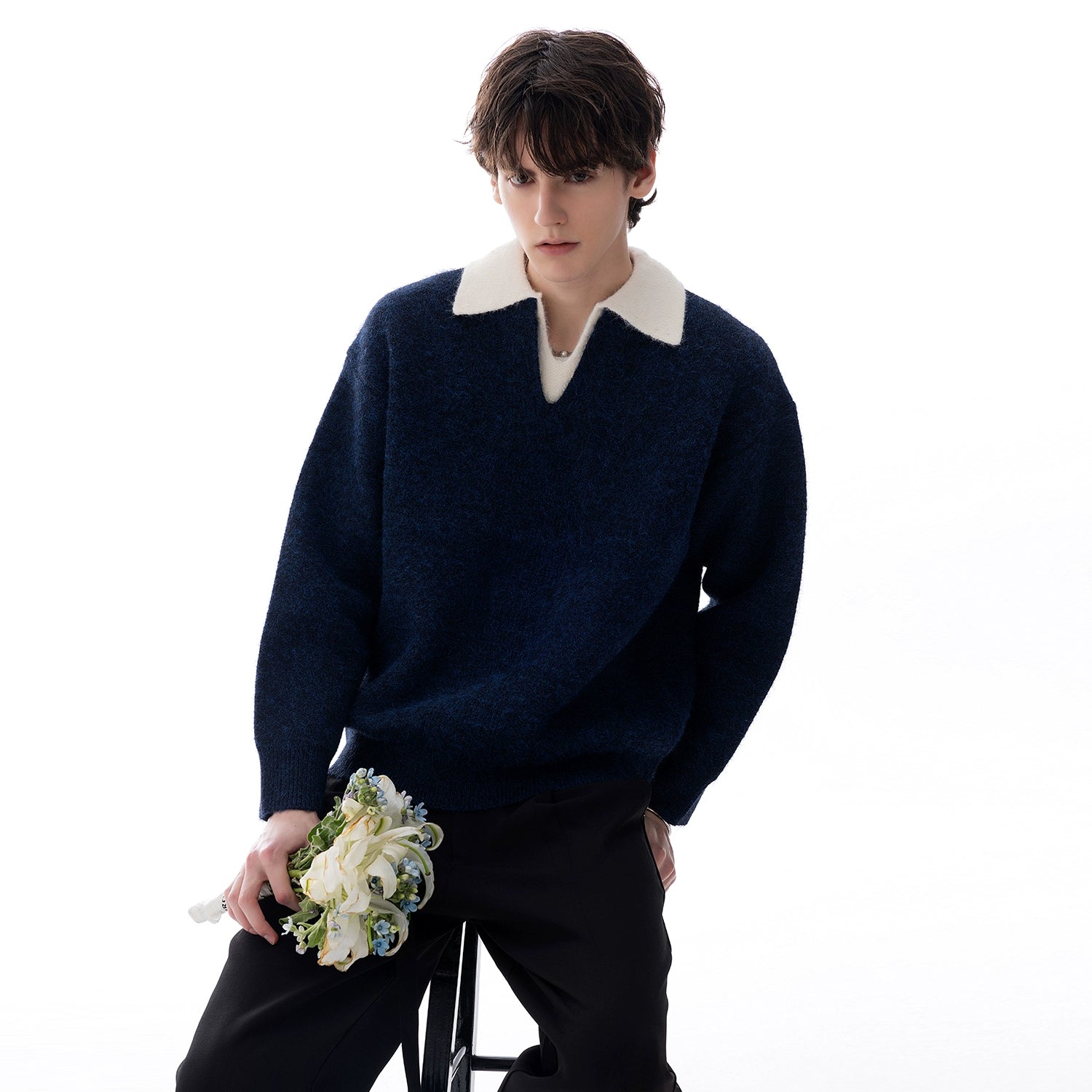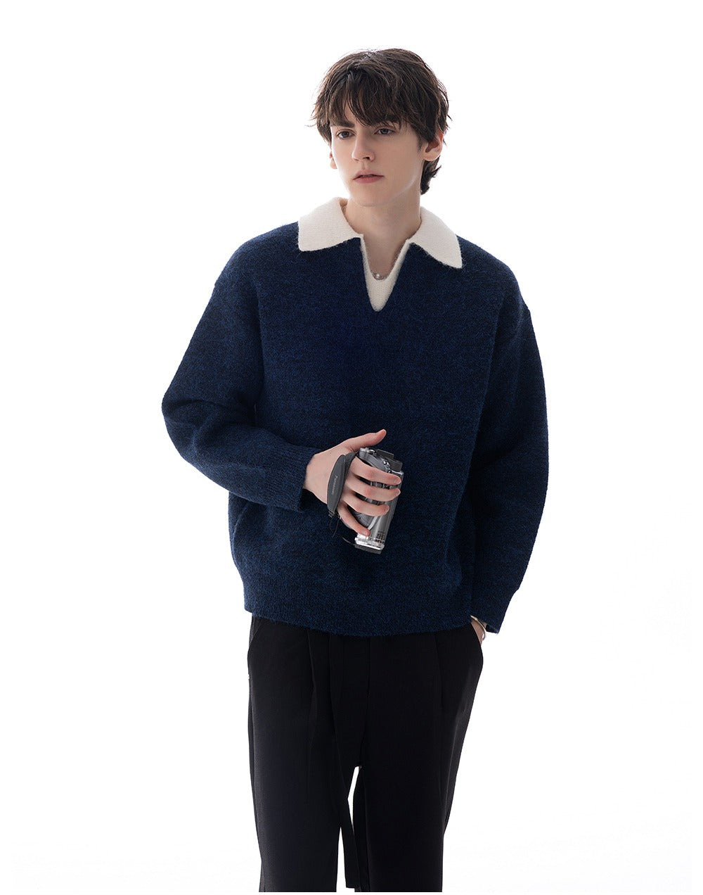 - Double-collar design with color contrast forms a visual focal point
